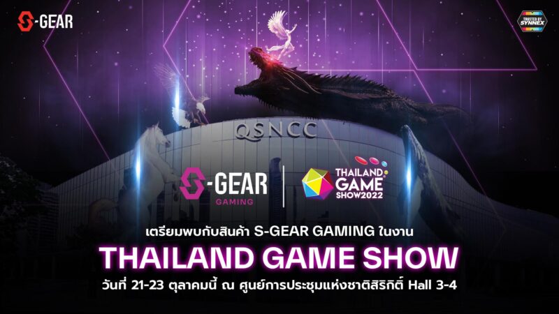 ทั้งนี้พบกับการเปิดตัวสินค้า S-GEAR Gaming ซีรีส์แรกทั้ง 6 รุ่น พร้อมสัมผัสประสบการณ์ใหม่กับการทดลองใช้สินค้าไฮไลท์ของแบรนด์ S-GEAR ในงาน Thailand Game Show 2022 วันที่ 21-23 ตุลาคม 2565, Exhibition Hall 3-4 ชั้น G (P2)  ณศูนย์การประชุมแห่งชาติสิริกิติ์ภายในงานนี้ยังได้สิทธิ์จอง  SCYLLA – Gaming Hot-Swapping Mechanical Keyboard และ Limited Edition Box (จำนวนจำกัด) เป็นเจ้าของก่อนใคร  นอกจากนี้ยังจะได้พบกับอินฟลูเอนเซอร์เกมมิ่งชื่อดัง “คุณเป้ไข่หมุน” ที่จะมาสร้างสีสันและ          ร่วมพูดคุยแบบใกล้ชิดกับแฟนคลับ ภายในงานทั้ง 3 วัน  โดยในวันที่ 21 ต.ค.65 เวลา 13.00 น. – 17.00 น. และ                                        วันที่ 22 – 23 ต.ค เวลา 11.00 น.- 16.00 น.