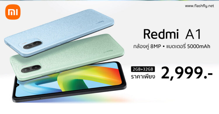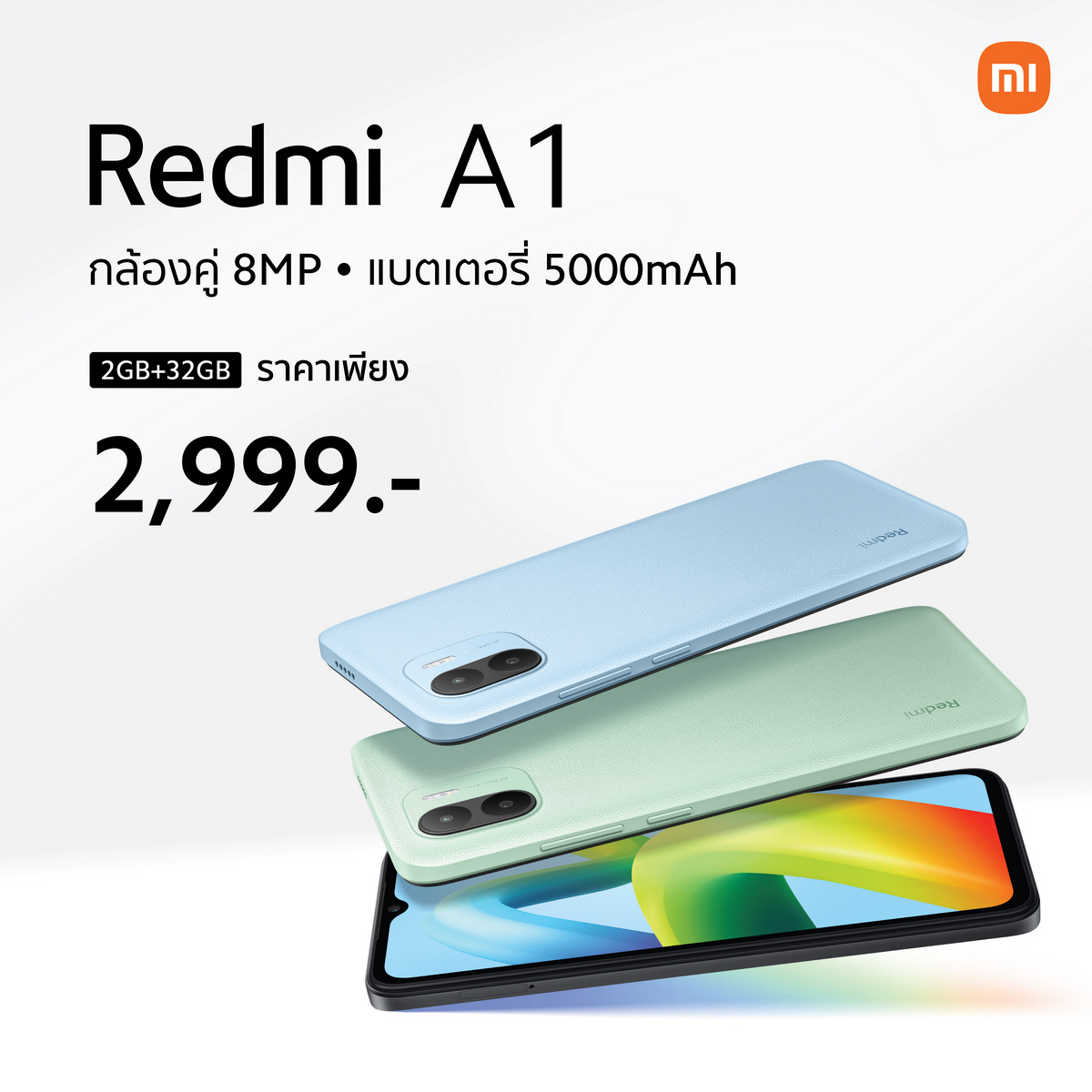 เสียวหมี่ ประเทศไทย ประกาศวางจำหน่าย Redmi A1 สมาร์ทโฟนสุดคุ้มในราคาเพียง 2,999 บาท มาพร้อมกับหน้าจอขนาดใหญ่ 6.52 นิ้ว กล้องคู่ 8MP และแบตเตอรี่ขนาดจุใจ 5,000mAh บนดีไซน์สวยงาม สามารถเป็นเจ้าของ Redmi A1 ได้แล้ววันนี้ ที่ Xiaomi Store และร้านตัวแทนจำหน่ายที่ร่วมรายการทั่วประเทศ