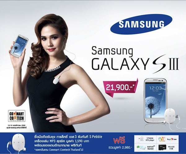 ซื้อมือถือซัมซุง Galaxy S3 ราคา 21,900 บาท รับฟรีทันที S Pebble เครื่องเล่น mp3 สุดชิค มูลค่า 1,590 บาท (เครื่องเล่น MP3 รัดแขนสำหรับออกกำลังกาย)