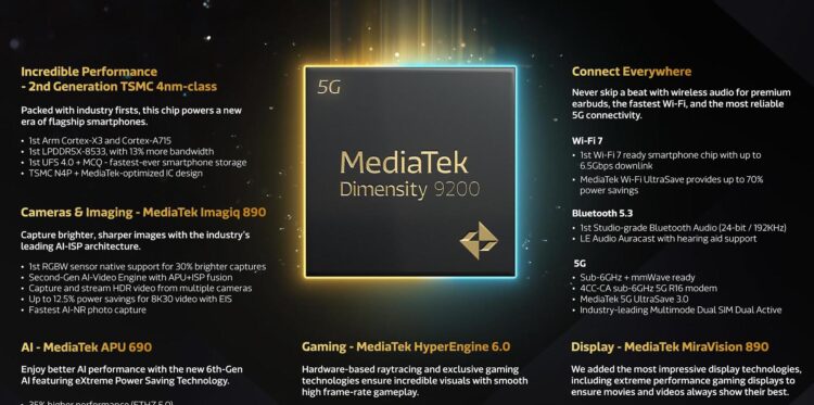 MediaTek Dimensity 9200 มีคุณสมบัติที่สำคัญอื่นๆ ได้แก่