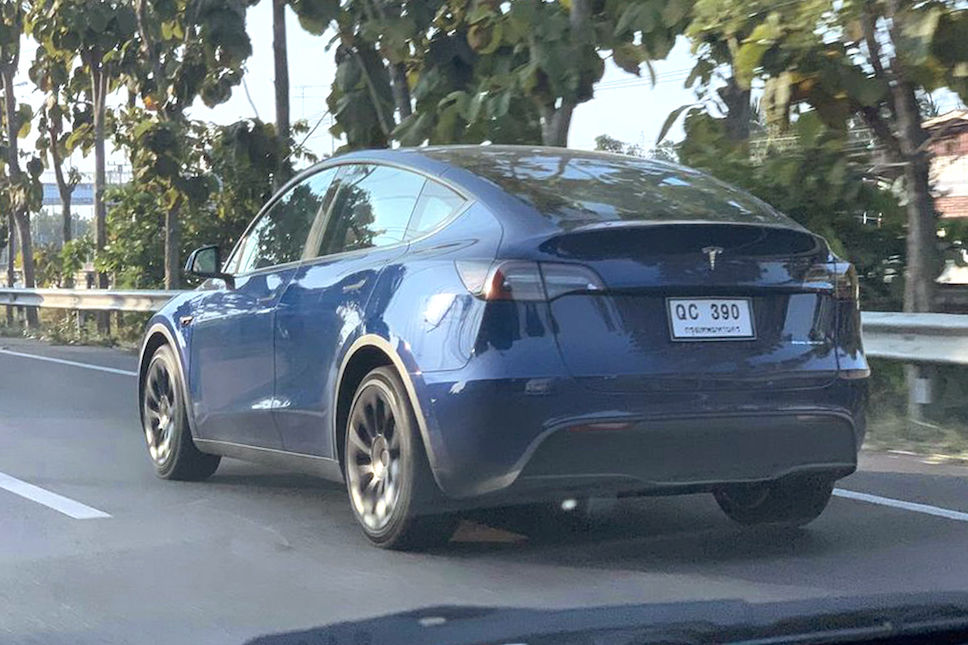 Tesla Model Y ที่ถูกจับภาพในไทย มาในสีน้ำเงิน Deep Blue Metallic ติดป้ายทะเบียน QC (Quality Check Car) ซึ่งใช้สำหรับรถทดสอบก่อนทำตลาดในไทย โดยแหล่งข่าวให้ข้อมูลเพิ่มเติมว่า Tesla ประเทศไทย จะเริ่มส่งมอบ Tesla Model Y ในช่วงต้นปีหน้า