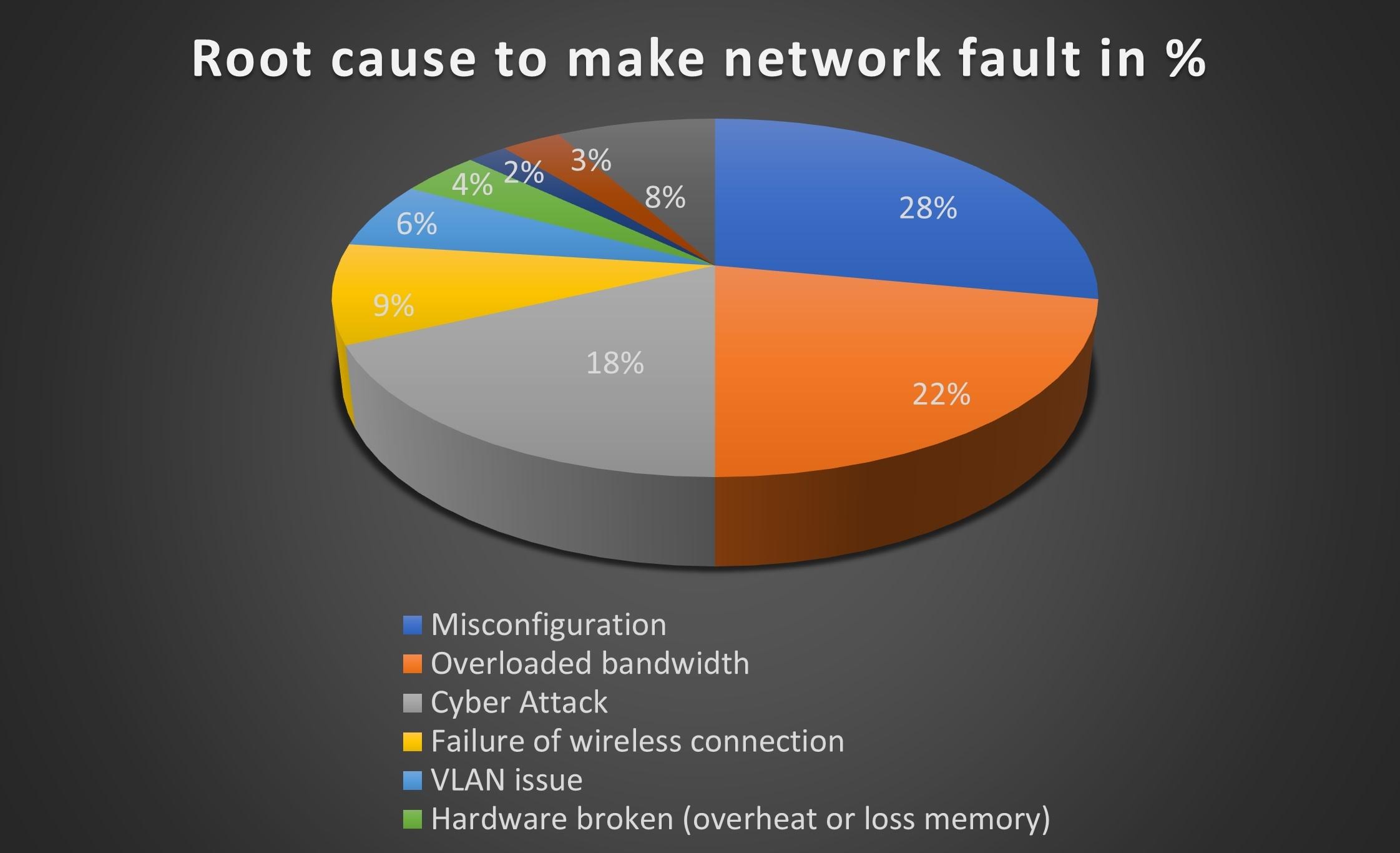 จากตารางเปรียบเทียบด้านบน สถาปัตยกรรมเครือข่ายแบบกระจายมีประโยชน์ในการช่วยให้การไหลของข้อมูลมีความยืดหยุ่นและเปิดกว้างมากขึ้น ความเป็นส่วนตัวและความปลอดภัยดีกว่าสถาปัตยกรรมแบบรวมศูนย์ อย่างไรก็ตาม ผู้ดูแลระบบไอทีจำเป็นต้องค้นหาสาเหตุของข้อผิดพลาดในระบบเครือข่ายด้วย จากรายงานของ Garner พบว่า 80% ของเวลาในการแก้ไขอินเทอร์เน็ตที่ผิดพลาดนั้นสูญเปล่าไปกับการค้นหาสาเหตุของข้อผิดพลาด ด้านประสิทธิภาพเครือข่ายและผลผลิตขององค์กรมีความสัมพันธ์ตามสัดส่วน กล่าวอีกนัยหนึ่ง ประสิทธิภาพของเครือข่ายที่มีประสิทธิภาพสูงจะเป็นประโยชน์ต่อประสิทธิภาพการทำงานและนำการพัฒนาในเชิงบวกมาสู่องค์กร จากแผนภูมิด้านล่าง ประมาณ 50% ของความผิดพลาดของเครือข่ายเกิดจากการกำหนดค่าผิดพลาดและแบนด์วิดธ์ที่โอเวอร์โหลด