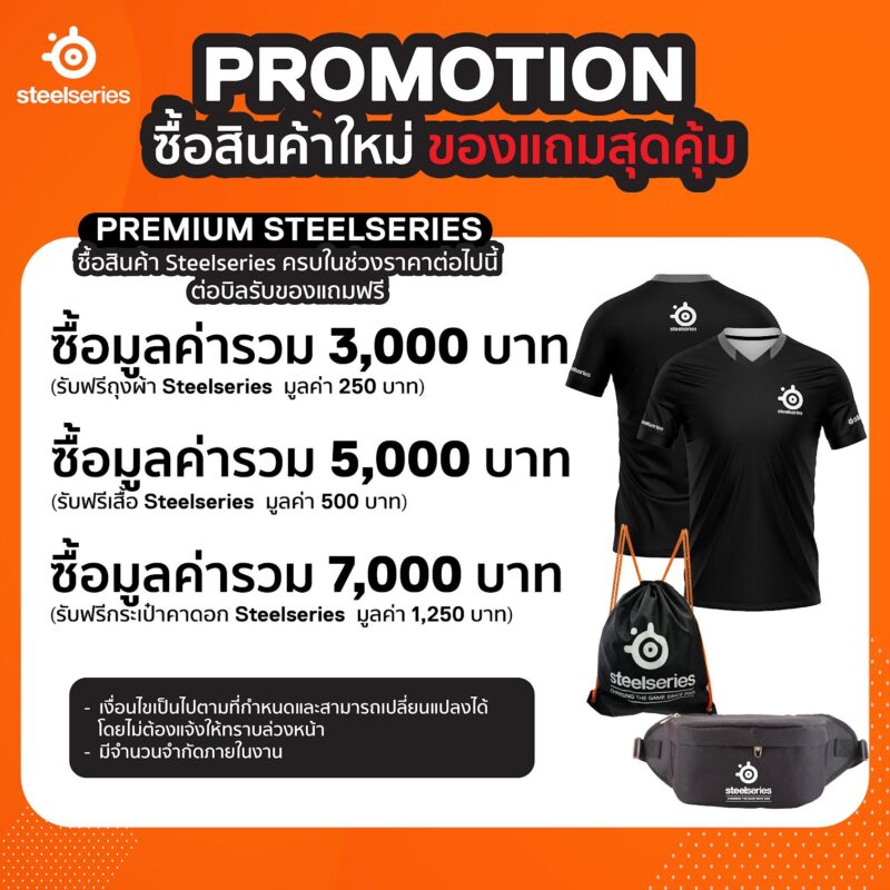 – ซื้อมูลค่ารวม 7,000 บาท รับฟรี กระเป๋าคาดอก Steelseries 1 ชิ้น