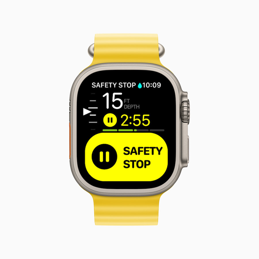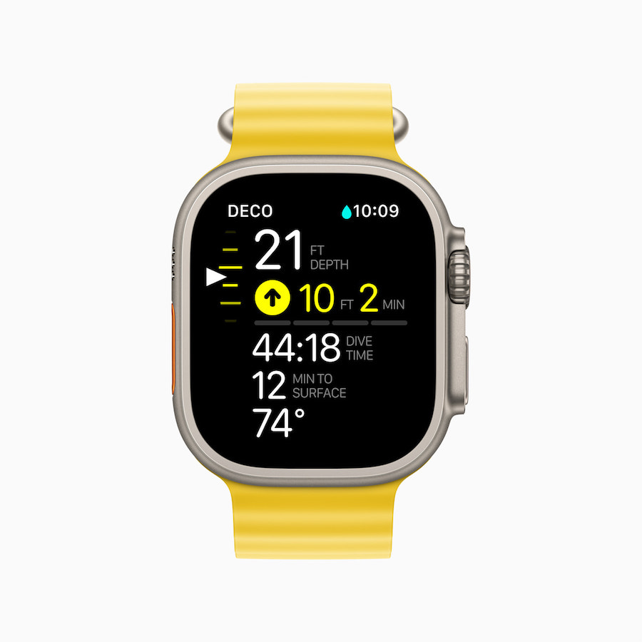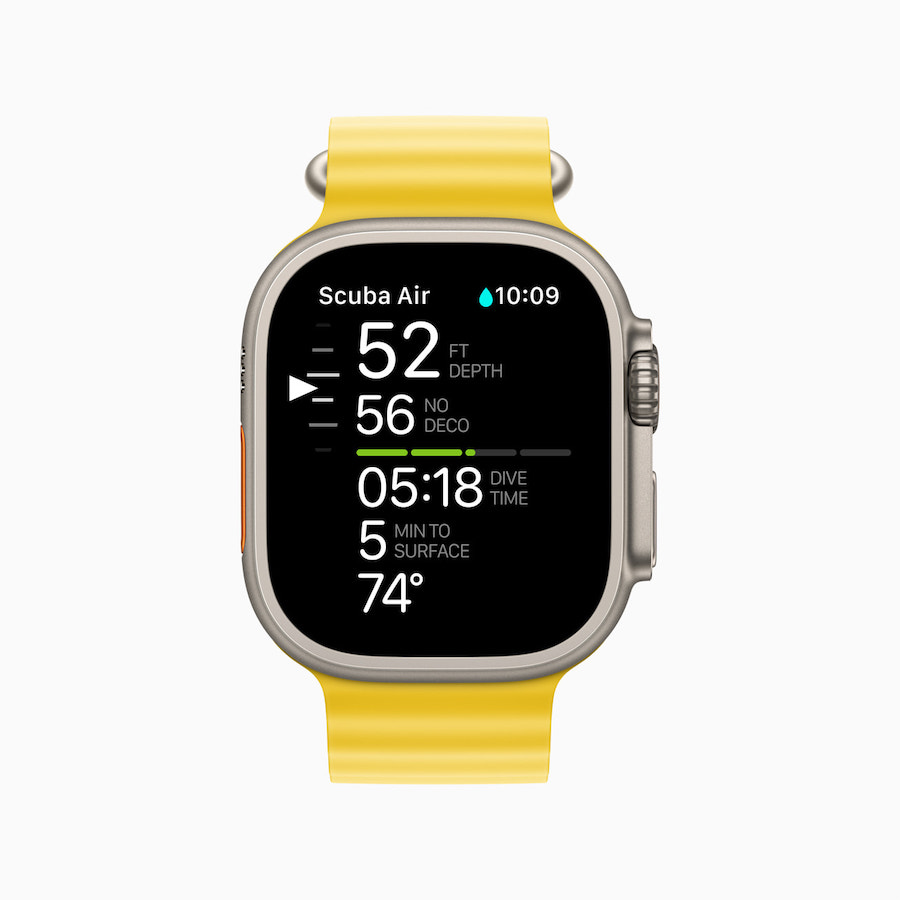 แอป Ocenic+ ออกแบบโดย Huish Outdoors ร่วมกับ Apple ช่วยให้นักดำน้ำสกูบาเชิงนันทนาการ สามารถนำนาฬิกาที่ใส่อยู่ในชีวิตประจำวันดำลงไปสู่ความลึกสูงสุด 40 เมตร ด้วยตัววัดความลึกแบบใหม่หมด และเซ็นเซอร์วัดอุณหภูมิน้ำบน Apple Watch Ultra