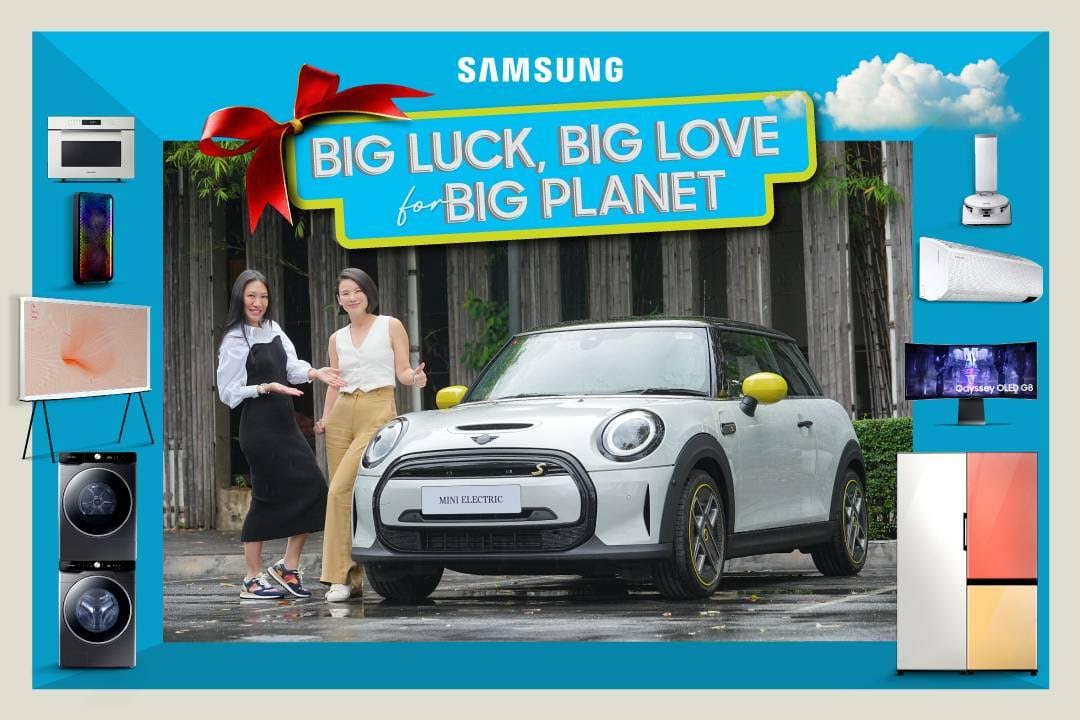 ซัมซุงเตรียมยกทัพสมนาคุณครั้งยิ่งใหญ่ ให้สมกับความเป็นแบรนด์อันดับหนึ่งที่ครองใจผู้บริโภคคนไทยมายาวนาน ครั้งนี้ ซัมซุง โดย นางสาวปารมี ทองเจริญ ผู้อำนวยการฝ่ายการตลาดองค์กร บริษัท ไทยซัมซุง อิเลคโทรนิคส์ จำกัด ได้ร่วมกับรถยนต์ MINI โดย นางสาวประภัสรา อร่ามวงศ์สมุทร ผู้อำนวยการ บริษัท มินิ ประเทศไทย จำกัด จับมือกันครั้งแรกเพื่อมอบแคมเปญ “Big Luck, Big Love for Big Planet” ให้เป็นของขวัญแห่งปีจากสองแบรนด์ดังระดับโลก ผู้นำแห่งนวัตกรรมสู่อนาคตที่ยั่งยืน เอาใจนักช้อปส่งท้ายปีเก่าต้อนรับปีใหม่ ได้ลุ้นรับสิทธิ์ BIG LUCK  เป็นเจ้าของ MINI Electric สัมผัสเทคโนโลยี Eco Friendly เป็นมิตรต่อสิ่งแวดล้อม ขับเคลื่อนด้วยพลังงานไฟฟ้าแบบ100% มูลค่า 2,459,000 บาท 1 รางวัล เพียงช็อปเครื่องใช้ไฟฟ้า ของซัมซุง ครบทุก 10,000 บาท ก็ได้สิทธิ์ลุ้นรับรางวัลใหญ่ส่งท้ายปีกันไปเลยสามารถร่วมกิจกรรมได้ง่ายๆ เพียงซื้อสินค้าซัมซุงที่ร่วมรายการ ครบทุก 10,000 บาท ถ่ายรูปใบเสร็จ หรือ ใบกำกับภาษี ที่มีรายการซื้อสินค้าซัมซุง และทำการอัปโหลดเพื่อรับสิทธิ์ลุ้นรางวัล 1 สิทธิ์