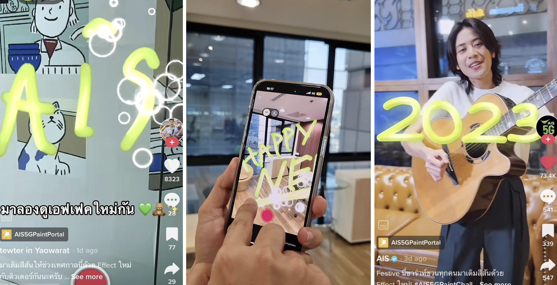 AIS 5G ปล่อยแคมเปญส่งท้ายปลายปี เอาใจติ๊กต๊อกเกอร์ กับภารกิจ #AIS5GPaintChallenge ชวนชาว TikTok ครีเอเตอร์ มาเพิ่มประสบการณ์ความพิเศษให้การทำคอนเทนต์มีความแปลกใหม่ไม่เหมือนใคร ด้วยการทำงานร่วมกับ TikTok เปิดตัวเอฟเฟค AIS 5G Paint Portal ครั้งแรกในวงการเทเลคอมที่ให้ทุกคนได้สนุกไปกับการใช้แปรงจากเทคโนโลยี AR มาระบายสีและดีไซน์การทำคอนเทนต์บนแพลตฟอร์ม TikTok