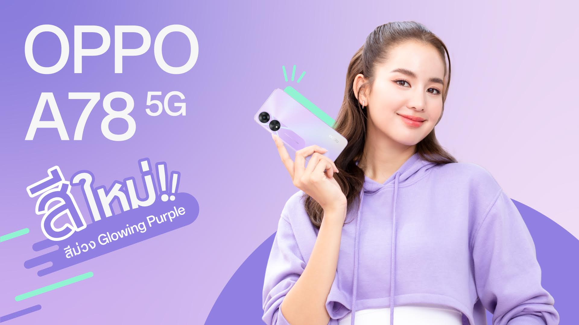 OPPO เตรียมเปิดตัวสมาร์ตโฟนรุ่นใหม่ล่าสุดจาก OPPO A Series พร้อมอัพสนุกให้สุดสปีดด้วย OPPO A78 5G สมาร์ตโฟน 5G ที่พร้อมเป็นคู่หูความสนุกให้คุณได้เต็มอิ่มไปกับทุกความบันเทิง ด้วยหน่วยความจำจัดเต็ม พร้อมชาร์จไว 33W SUPERVOOC และดีไซน์ขอบเหลี่ยมทันสมัย พร้อมด้วย OPPO Glow Design อัพสีสวยในสีม่วง Glowing Purple