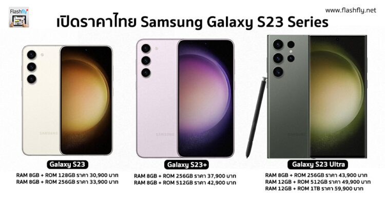 Samsung เปิดตัวสมาร์ทโฟน Galaxy S23 Series อย่างทางการแล้ว พร้อมเปิดรับจองทันทีทั้งในไทยและต่างประเทศ สำหรับในประเทศไทยจะเริ่มจัดส่งและวางจำหน่ายตั้งแต่วันที่ 24 กุมภาพันธ์ 2566 เป็นต้นไป โดยแต่ละรุ่นมีราคาดังต่อไปนี้