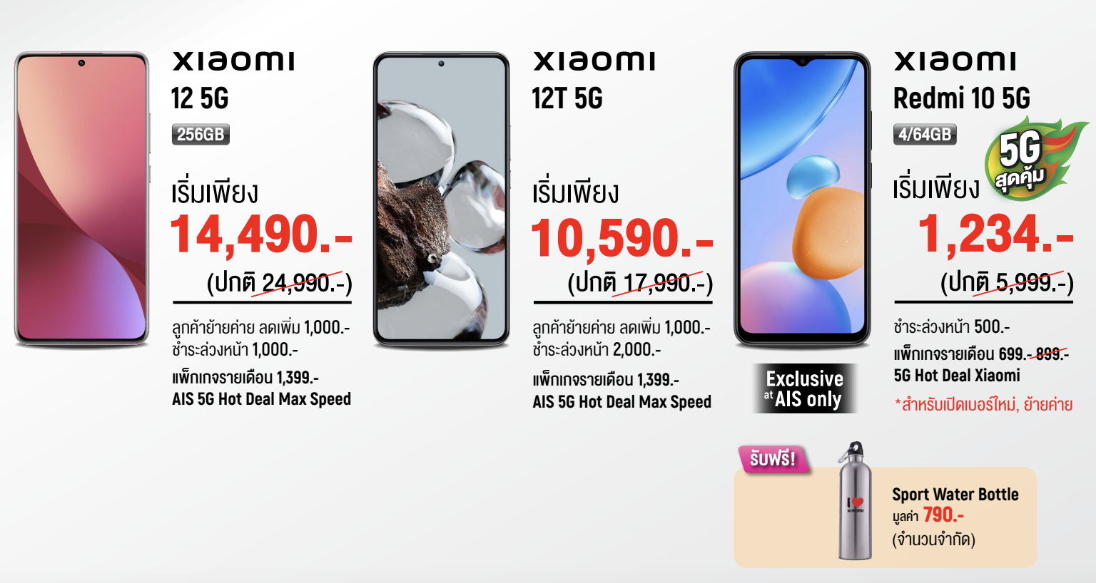 - Xiaomi 12 5G ราคาสุดคุ้มเพียง 14,490 บาท จากราคาปกติ 24,990 บาท ส่วนลดพิเศษ 10,500 บาท