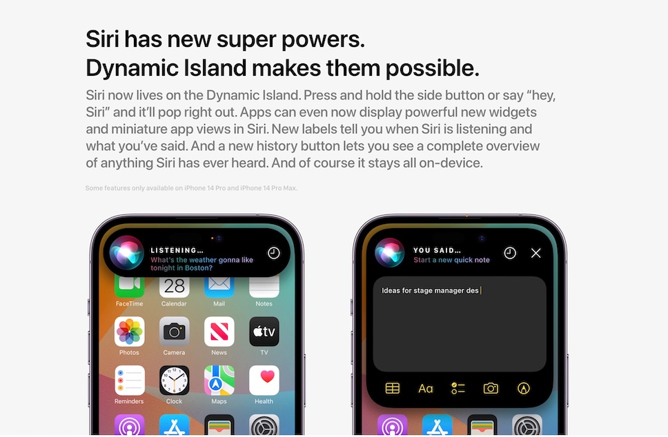Parker Ortolani มองว่า Dynamic Island เป็นพื้นที่ที่เหมาะสมที่จะให้ Siri อาศัยอยู่ ซึ่งพร้อมโต้ตอบกับผู้ใช้งานได้ทันทีด้วยพื้นที่ที่สามารถขยายได้ของ Dynamic Island