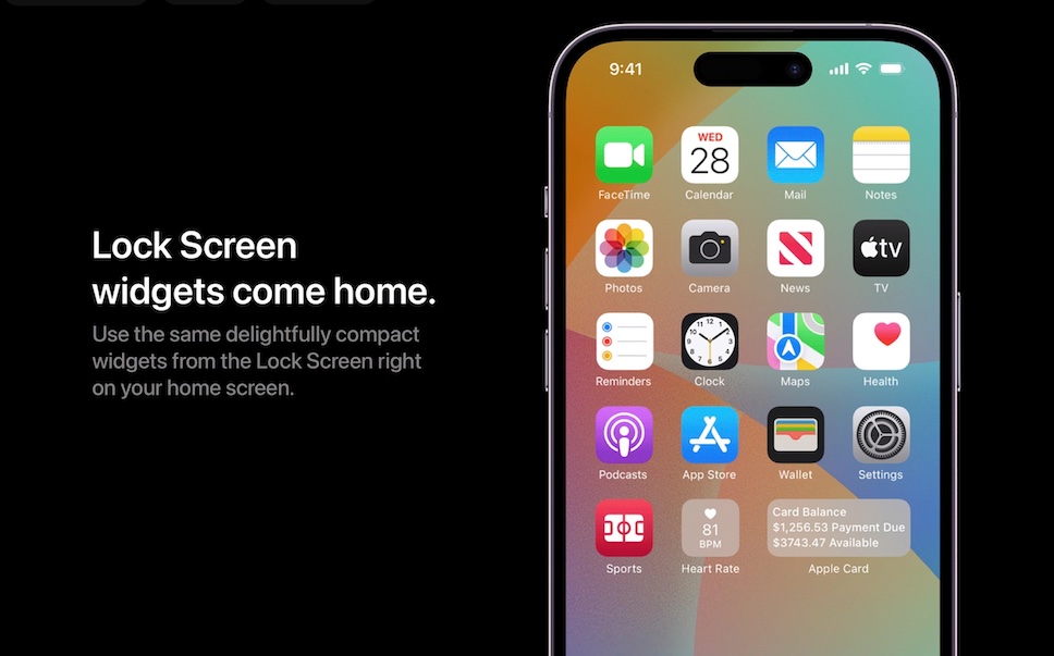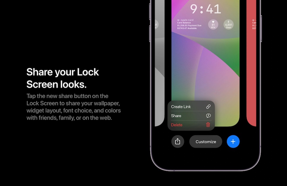 หน้าจอล็อคใน iOS 17 ควรถูกยกระดับการปรับแต่งฟอนต์และวิดเจ็ตได้มากขึ้น มีความสามารถในการดาวน์โหลดฟอนต์อื่น ๆ แล้วนำไปใช้กับนาฬิกาล็อคหน้าจอได้ รวมถึงความสามารถในการแชร์หน้าจอล็อคกับผู้อื่นได้อย่างเต็มที่