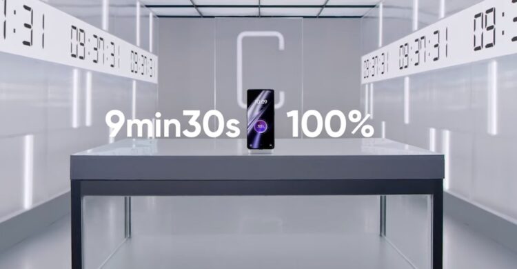วิดีโอสาธิตการชาร์จเร็ว 240W ของสมาร์ทโฟน realme GT3 แสดงให้เห็นการชาร์จแบตเตอรี่เริ่มต้นที่ระดับ 1% เมื่อนำมาชาร์จเพียง 80 วินาที ได้ระดับแบตเตอรี่ 20% ผ่านไป 4 นาที ชาร์จได้ 50% ก่อนจะถูกชาร์จจนเต็ม 100% ในเวลาเพียง 9 นาที 30 วินาที