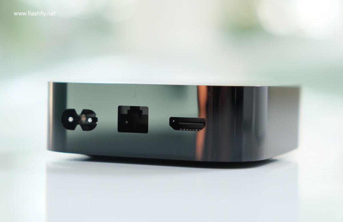 ด้านหลังมีช่องต่อสายไฟ, พอร์ต Gigabit Ethernet สำหรับต่อสาย LAN และ พอร์ต HDMI (สำหรับรุ่น Wi-Fi + Ethernet ขณะที่รุ่น Wi-Fi จะไม่มีพอร์ต Ethernet)