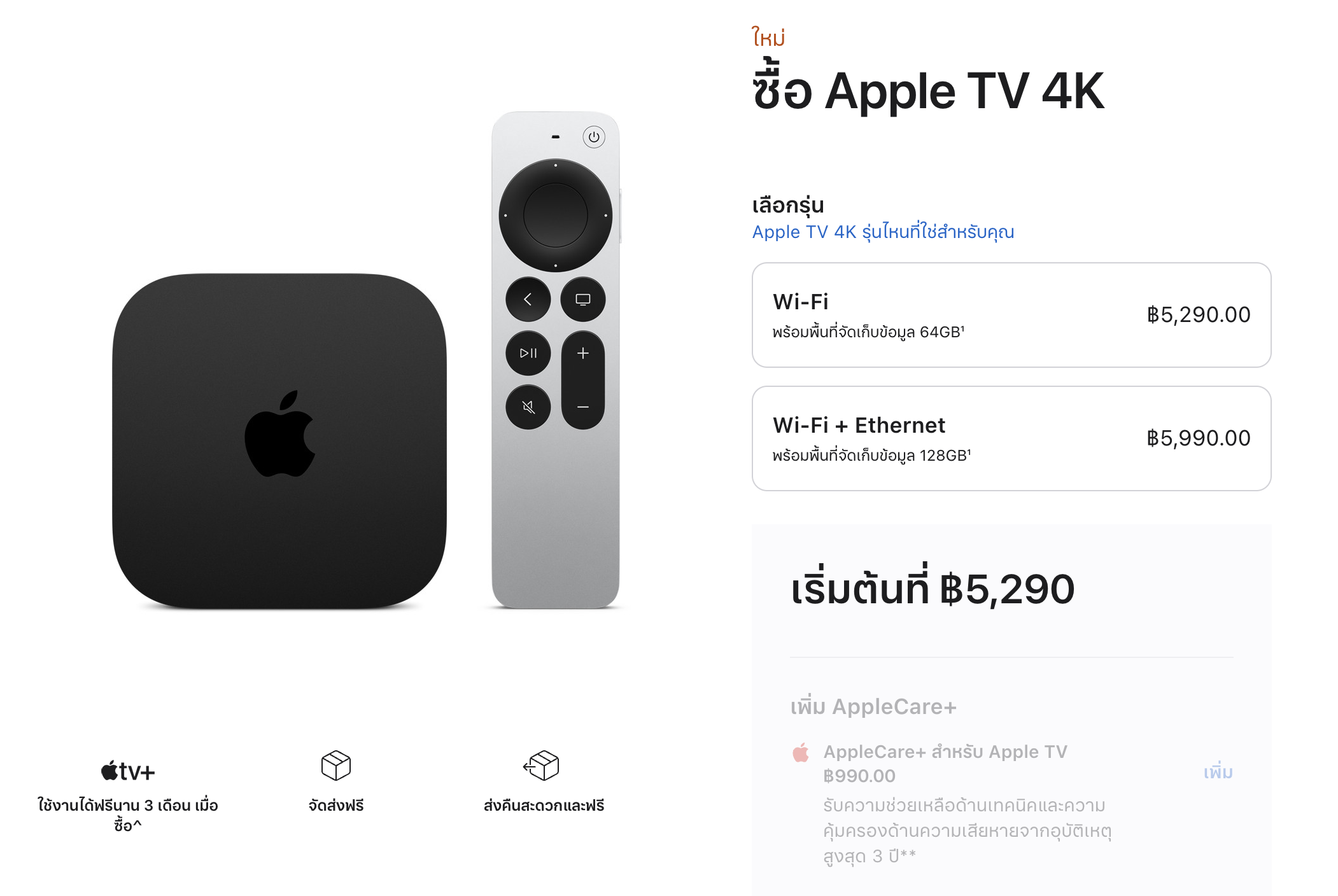 ปกติแล้วการอัปเกรดฮาร์ดแวร์ของ Apple จะมาพร้อมราคาที่สูงขึ้น โดยเฉพาะการอัปเกรดประสิทธิภาพและดีไซน์ใหม่ แต่สำหรับ Apple TV 4K รุ่นที่ 3 กลับมีราคาถูกลงกว่าเดิม หากย้อนไปดูราคาเปิดตัวของ Apple TV 4K รุ่นที่ 2 จะพบว่ามีราคาเริ่มต้นที่ 6,700 บาท สำหรับรุ่น 32GB และ 7,400 บาท สำหรับรุ่น 64GB แต่สำหรับ Apple TV 4K รุ่นที่ 3 เริ่มต้นเพียง 5,290 บาท สำหรับรุ่น 64GB (รุ่น Wi-Fi) และราคา 5,990 บาท สำหรับรุ่น 128GB (รุ่น Wi-Fi + Ethernet) สามารถสั่งซื้อได้แล้ววันนี้