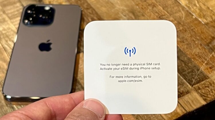ทั้งนี้ iPhone 14 Series ที่วางจำหน่ายในสหรัฐอเมริกา ก็ไม่มีถาดใส่ซิมการ์ดอีกต่อไปแล้ว จึงต้องใช้ eSIM เท่านั้น ซึ่ง Apple อธิบายว่า eSIM มีความปลอดภัยมากกว่าซิมการ์ดที่จับต้องได้ เนื่องจากไม่สามารถถอดออกจาก iPhone ที่ทำหายหรือถูกขโมย และยังสามารถจัดการ eSIM ได้สูงสุด 8 ซิม ในแอปการตั้งค่าของ iPhone จึงไม่จำเป็นต้องเปลี่ยนซิมการ์ดบ่อยเมื่อเดินทางไปต่างประเทศ