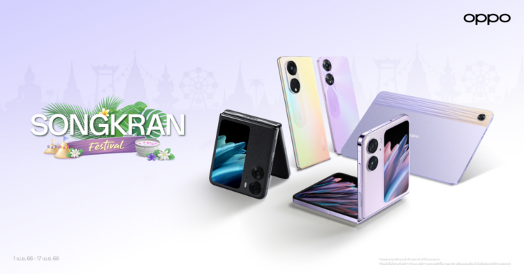 OPPO แบรนด์เทคโนโลยีชั้นนำระดับโลก เติมเต็มความสุขในช่วงเวลาสงกรานต์สุดพิเศษ ด้วยโปรโมชันมาแรง พร้อมยกขบวนสินค้าสุดฮอต ลดแลกแจกแถม ตั้งแต่วันที่ 1 – 17 เมษายน 2566 ที่ OPPO Brand Shop และตัวแทนจำหน่ายทั่วประเทศ