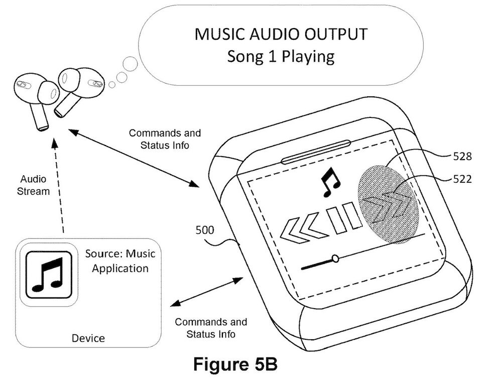 นอกจากควบคุมการเล่นเพลงหรือมีเดียได้โดยตรงบนจอสัมผัส สิทธิบัตรฉบับนี้ ยังระบุว่า เคสชาร์จ AirPods ยังสามารถควบคุมหูฟังไร้สายได้ดีขึ้น ไม่ว่าจะเปลี่ยนโหมดเอาต์พุตเสียง เปลี่ยนแหล่งสัญญาณเสียง ปรับระดับเสียง และวิธีการควบคุมหูฟัง