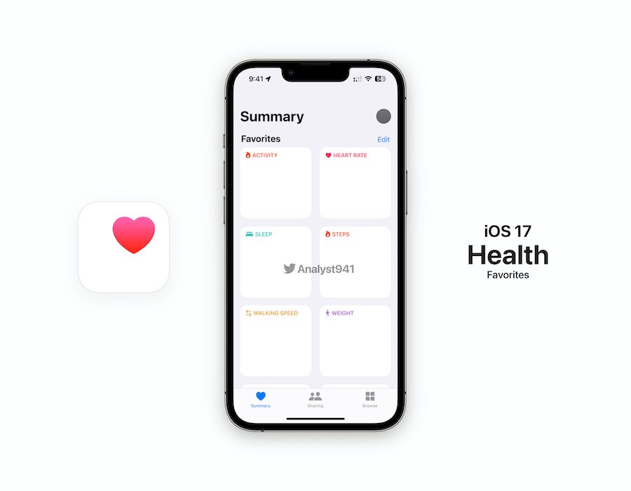 แอป Health ใน iOS 17 จะมีอินเทอร์เฟซที่ปรับปรุงใหม่สำหรับแท็บ “Favorites” ดีไซน์ใหม่จะใช้รูปสี่เหลี่ยมจัตุรัสขนาดเล็ก เพื่อให้ผู้ใช้งานสามารถข้อมูลเพิ่มเติมได้โดยไม่ต้องเลื่อนแอปลงมา