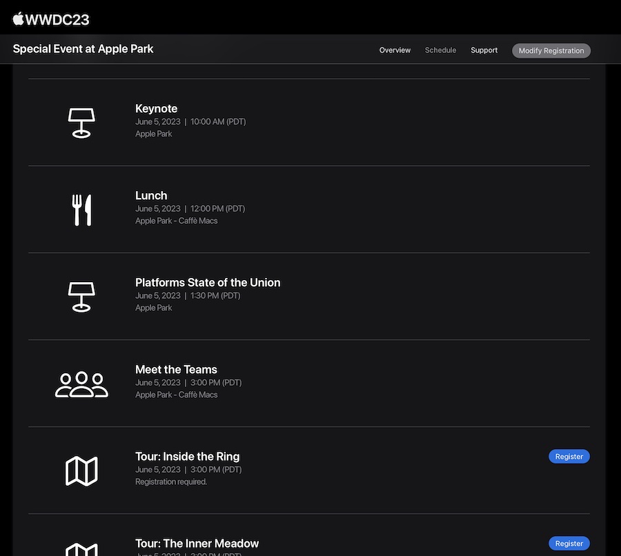 Paul Hudson หนึ่งในนักพัฒนาที่ได้เข้าร่วมงาน WWDC 2023 ที่ Apple Park แชร์กำหนดการต่างๆ ในวันแรกของการประชุม โดยผู้ร่วมงานสามารถเช็คอินเข้างานได้ตั้งแต่วันอาทิตย์ ก่อนที่งานจะมีขึ้นในวันถัดไป ซึ่งตอนเช้าของวันที่ 5 มิถุนายน นักพัฒนาสามารถรับประทานอาหารเช้าที่ Apple Park ก่อนที่ Apple จะประกาศ Keynote ในเวลา 10.00 น. (ตามเวลาท้องถิ่น)
