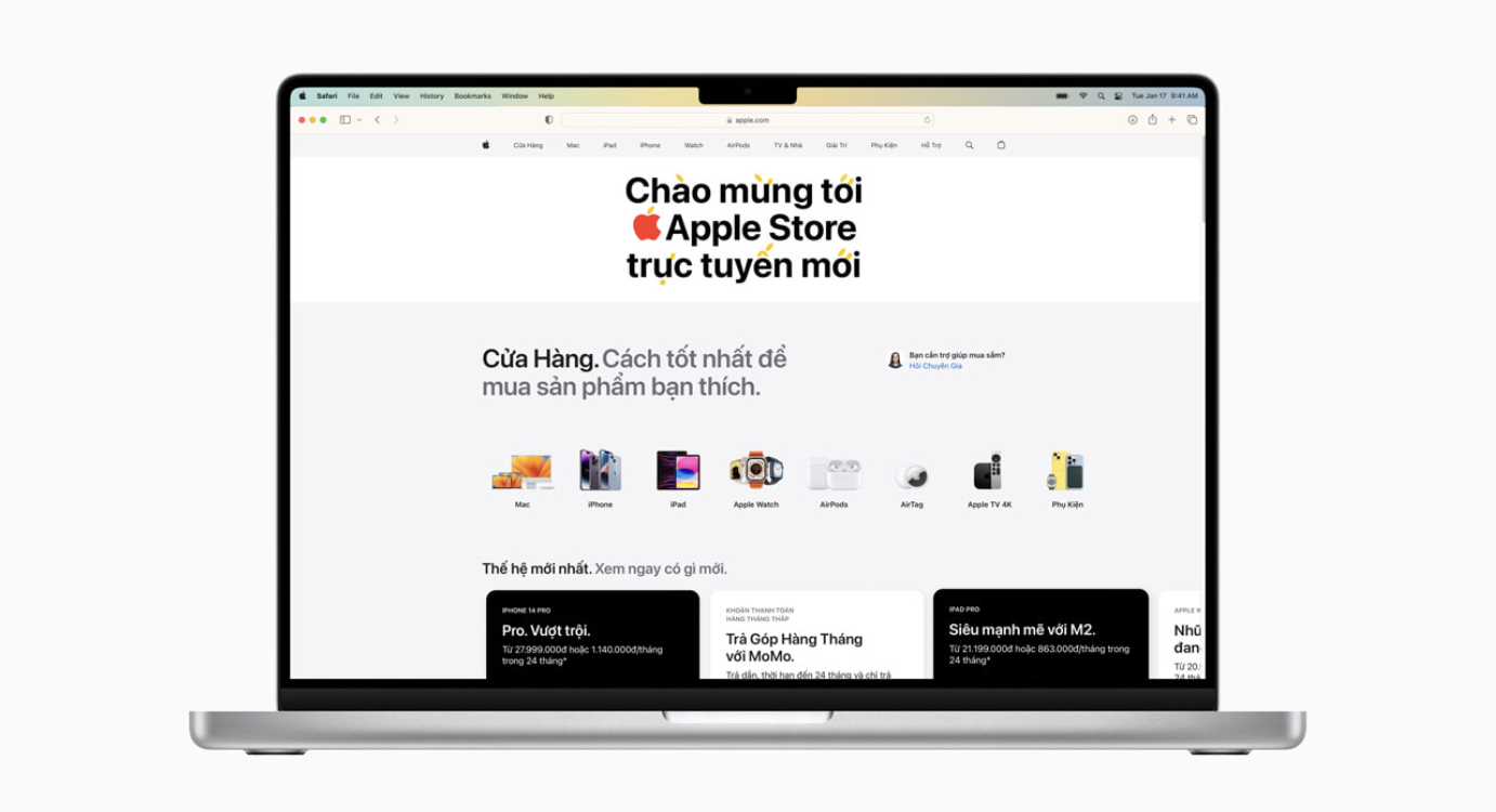 วันนี้ Apple ประกาศการขยายตัวของ Apple Store ออนไลน์สู่ประเทศเวียดนาม ทำให้ในตอนนี้ลูกค้าทั่วประเทศสามารถเลือกซื้อสินค้าได้โดยตรงกับ Apple และรับบริการอันยอดเยี่ยมจากสมาชิกทีมที่ได้รับการฝึกอบรมมาเป็นอย่างดี ซึ่งพร้อมที่จะแชร์ความเชี่ยวชาญของตนเองในภาษาเวียดนาม