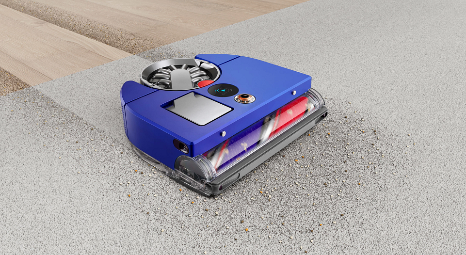 โดดเด่นด้วยด้ามแปรงใหม่ที่ทำงานแบบ Triple-action เต็มความกว้าง อย่างแปรงไนลอน ‘Fluffy’ สำหรับเก็บเศษขยะขนาดใหญ่ และเส้นใยคาร์บอนไฟเบอร์ที่ทำหน้าที่ต้านไฟฟ้าสถิตเพื่อแยกฝุ่นผงขนาดเล็กออกจากพื้นแข็ง มาพร้อมขนแปรงไนลอนแบบแข็งที่สามารถใช้กับพื้นพรมได้ และระบบกันสั่นช่วงล่างแบบดูอัลลิงก์ (Dual link) ที่ช่วยให้หุ่นยนต์ดูดฝุ่นสามารถขึ้นไปยังพื้นต่างระดับได้สูงถึง 21 มิลลิเมตร และด้วยรูปทรงที่แบนและต่ำทำให้สามารถเข้าไปทำความสะอาดใต้เฟอร์นิเจอร์ได้ที่ความต่ำสุด 99 มิลลิเมตร หลังจากใช้งานไป 50 นาที6 ตัวเครื่องจะกลับไปชาร์จที่แท่นชาร์จโดยอัตโนมัติ และแอปพลิเคชัน MyDyson จะรายงานการทำความสะอาดหลังใช้งานในแต่ละครั้ง