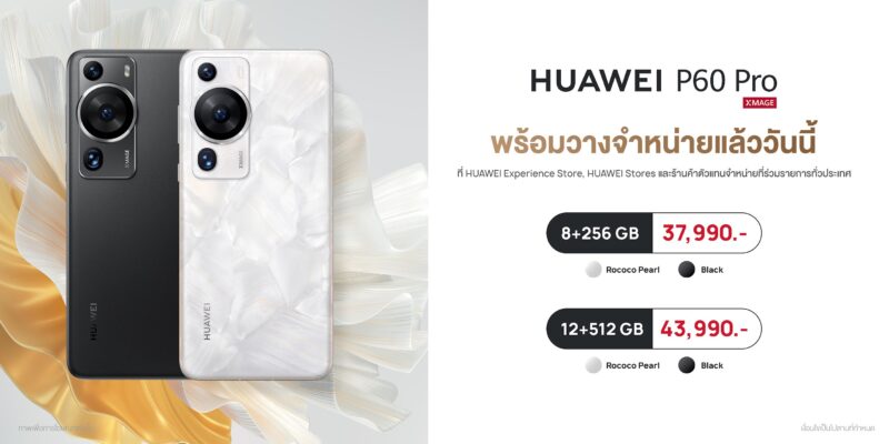 HUAWEI P60 Proวางจำหน่ายด้วยกัน 2 สี ได้แก่ สีขาวไข่มุก Rococo Pearl และสีดำ สำหรับหน่วยความจำ 8+256 GB วางจำหน่ายในราคา 37,990 บาท และสำหรับหน่วยความจำ 12+512 GB วางจำหน่ายในราคา 43,990 บาท สั่งซื้อสินค้าที่หน้าร้าน HUAWEI Experience Store และร้านค้าที่ร่วมรายการ รวมถึงช่องทางออนไลน์อย่าง HUAWEI Store และร้านค้าอย่างเป็นทางการของหัวเว่ยบน Shopee, Lazada และแอปพลิเคชัน My HUAWEI