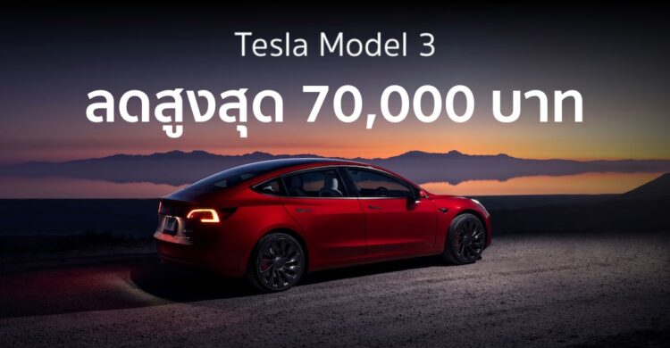 Tesla ประเทศไทย ลดราคา Model 3 สูงสุด 70,000 บาท เริ่มต้นที่ 1,709,000 บาท