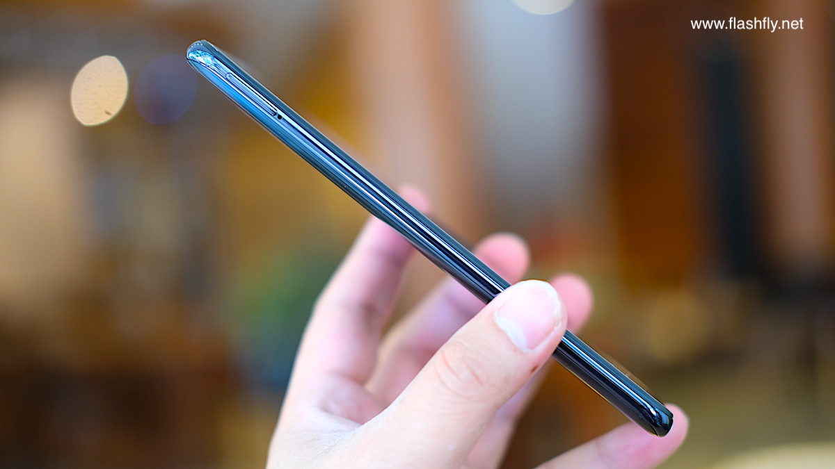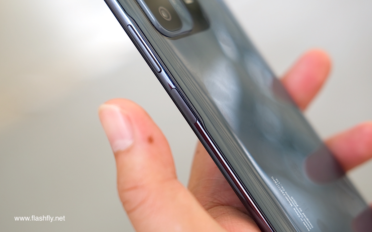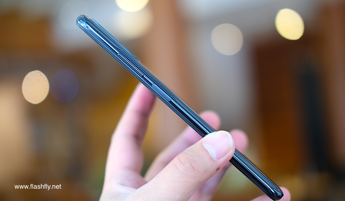 ขอบด้านข้างมีความบาง 8.29 มิลลิเมตร มีปุ่มปรับระดับเสียง ถัดลงมาเป็นปุ่มเพาเวอร์ ซึ่งติดตั้งเซ็นเซอร์สแกนลายนิ้วมือไว้บนปุ่มเพาเวอร์ด้วย