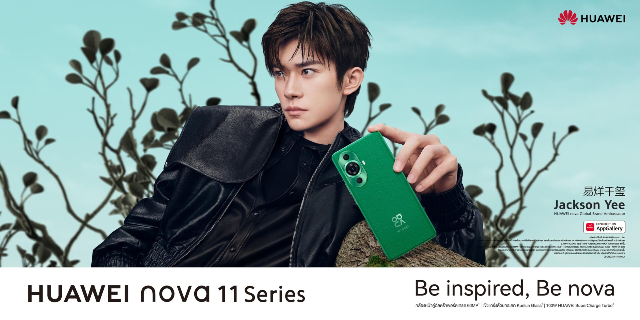 HUAWEI nova 11 Series ผสมผสานความมีชีวิตชีวา ความมั่นใจ และคาแรคเตอร์ของคนเจนใหม่เข้ากับแนวคิดการออกแบบที่มุ่งเน้นเพื่อมอบประสบการณ์การใช้งานสมาร์ทโฟนที่ยอดเยี่ยมทั้งนวัตกรรมกล้อง ความบันเทิง และดีไซน์ที่เป็นเอกลักษณ์โดดเด่นในฐานะสมาร์ทโฟนแฟชั่นที่มีสไตล์ และเพื่อเป็นการตอกย้ำภาพของ nova Series ให้ชัดเจนยิ่งขึ้น หัวเว่ยได้ประกาศร่วมมือกับ Jackson Yee ในฐานะ HUAWEI nova Global Brand Ambassador ตั้งแต่ปี 2018 ในรุ่นแรกอย่าง HUAWEI nova 3 นับเป็นตัวแทนของเยาวชนคนรุ่นใหม่สะท้อนตัวตนของความเป็น nova ออกมาได้อย่างชัดเจน