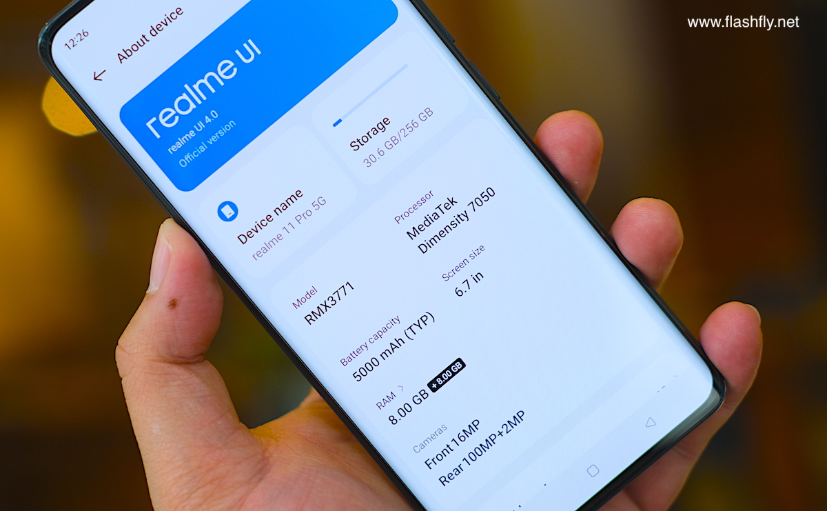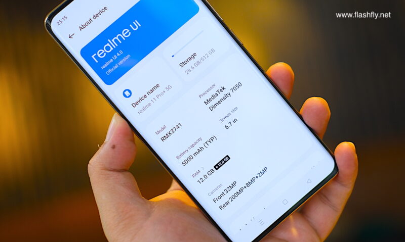 realme 11 Pro 5G ใช้ชิปประมวลผล MediaTek Dimensity 7050 5G แบบเดียวกับที่พบใน realme 11 Pro+ 5G ดังนั้น ประสิทธิภาพของทั้ง 2 รุ่น จึงไม่หนีกันมากนัก อย่างไรก็ตาม realme 11 Pro 5G ที่ทีมงาน @Flashfly ได้รับมารีวิว มีขนาดความจำ RAM 8GB + ROM 256GB ขณะที่ realme 11 Pro+ 5G ให้ RAM 12GB + ROM 512GB