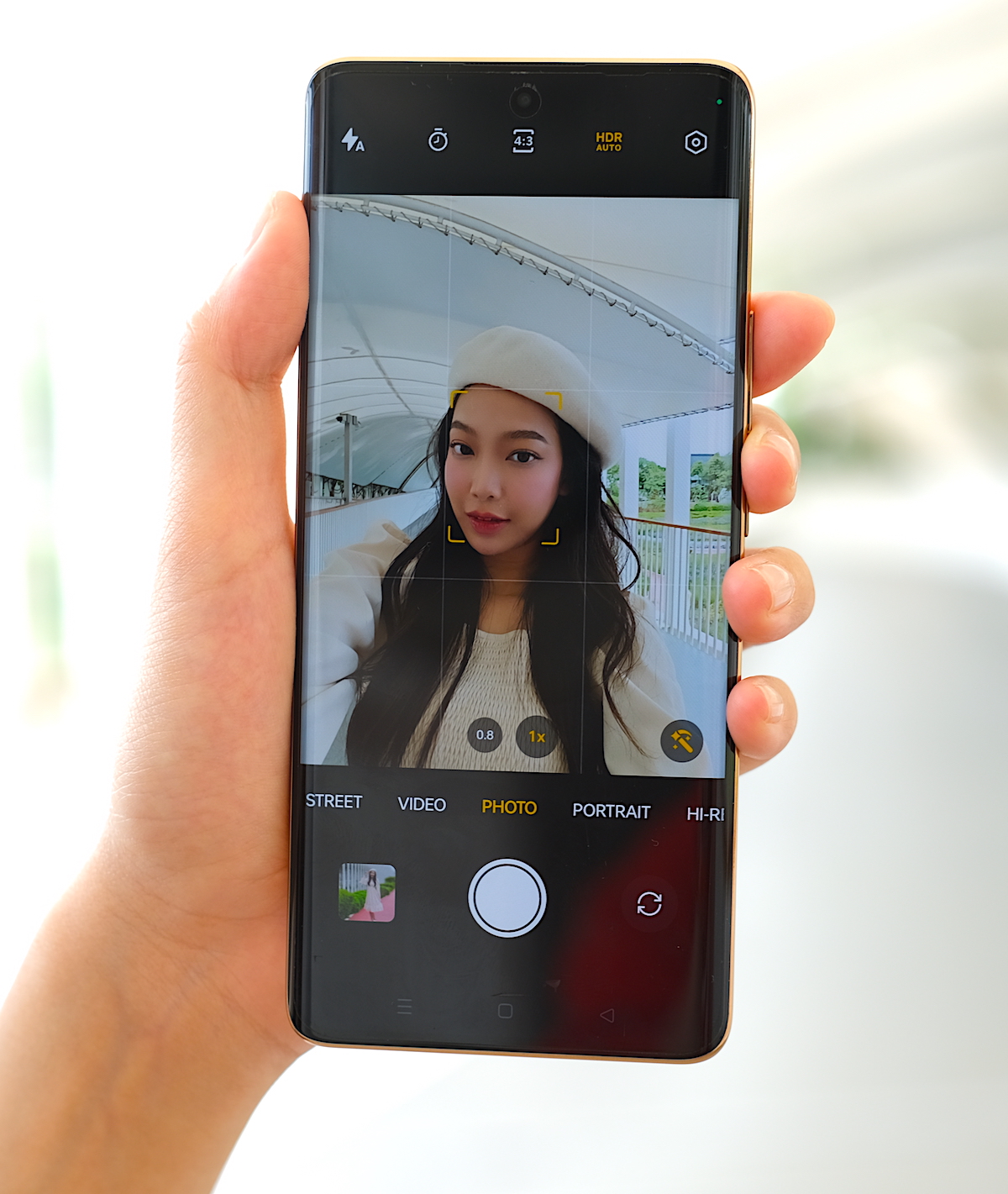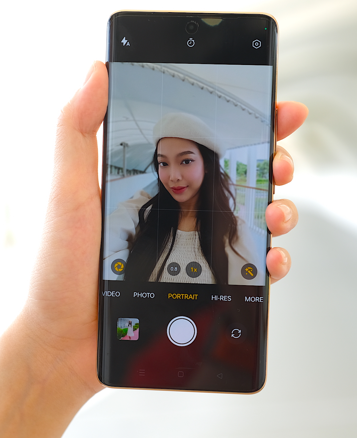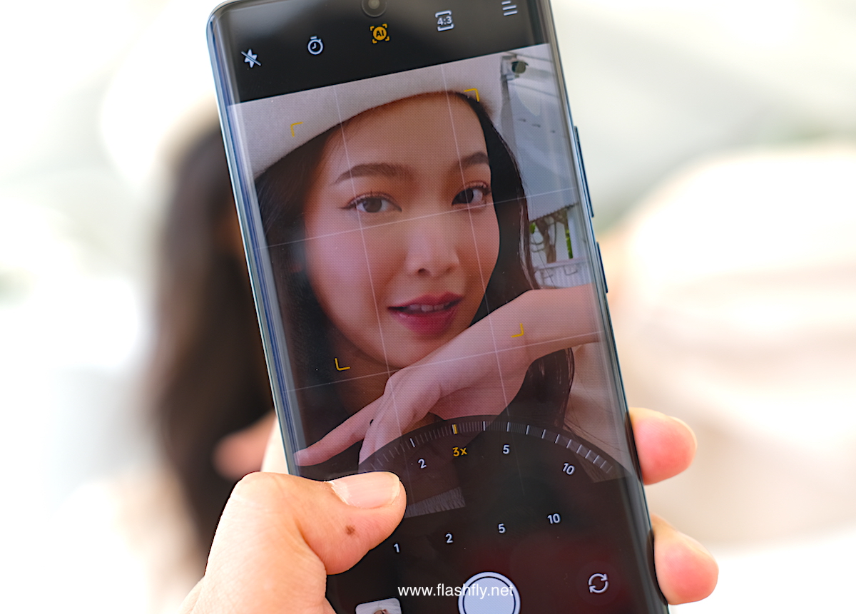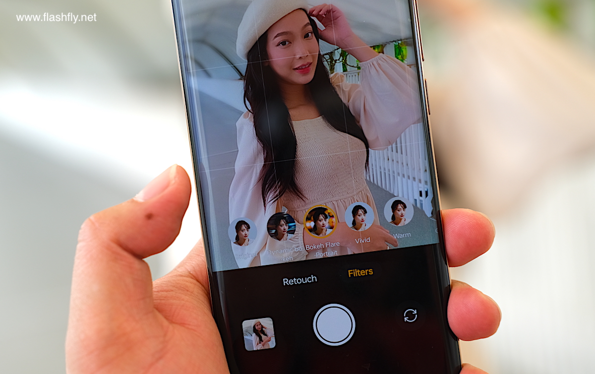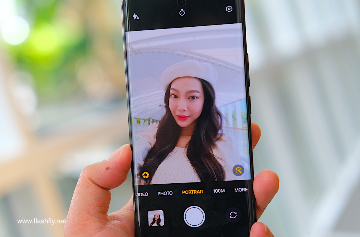 โหมด Portrait ของกล้องหน้า สามารถซูม 0.8x และ 1x ได้เช่นกัน อีกทั้งยังสามารถปรับค่า F เพื่อละลายฉากหลังได้อีกด้วย ทำให้ตัวบุคคลโดดเด่นยิ่งขึ้น ขณะที่ฟีเจอร์ Retouch และ Filters ก็ใช้งานได้เหมือนโหมด Photo