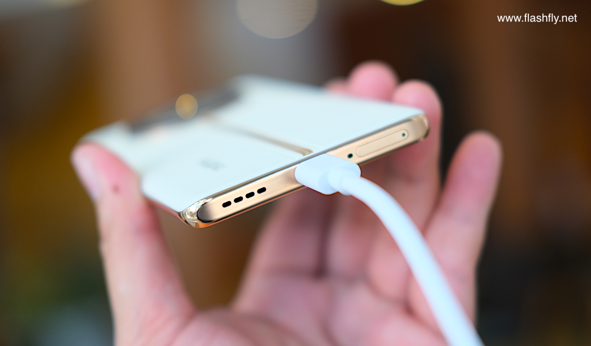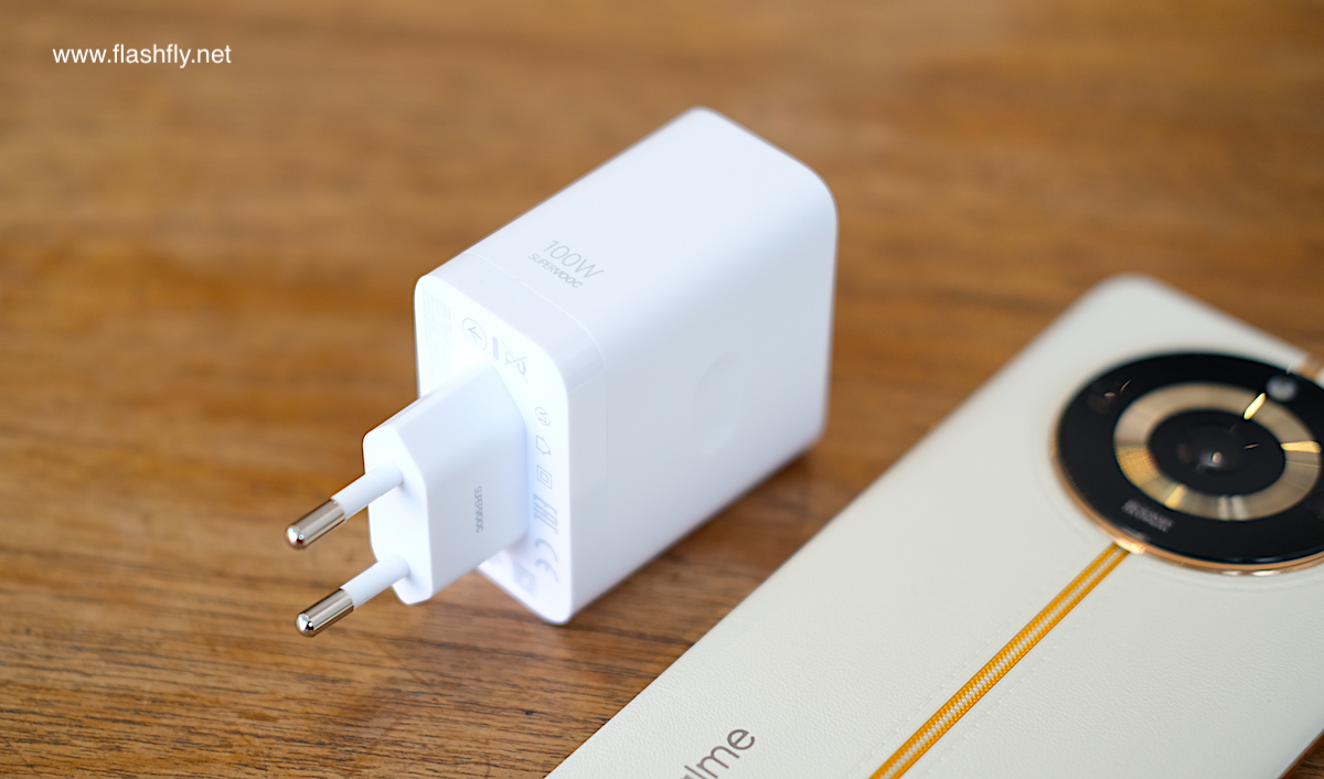 ที่สำคัญก็คือ realme 11 Pro+ 5G ยังรองรับเทคโนโลยีชาร์จเร็ว 100W SUPERVOOC โดยแถมหัวชาร์จ 100W Power Adapter มาให้ด้วย ซึ่งเป็นหัวชาร์จใหม่แบบ GaN (Gallium Nitride) เมื่อเทียบกับหัวชาร์จแบบเดิม จะพบว่าหัวชาร์จ GaN มีขนาดเล็กลงทำให้พกพาได้สะดวกขึ้น และหัวชาร์จแบบ GaN ยังสามารถกระจายความร้อนได้ดีกว่า ทำให้ realme 11 Pro+ 5G เป็นสมาร์ตโฟนรุ่นแรกในเซกเมนต์ ที่รองรับการชาร์จเร็วแบบ GaN 100W ใช้เวลาชาร์จ 3 นาที ได้ระดับแบตเตอรี่ 17% และถ้าชาร์จจนเต็ม 100% จะใช้เวลาเพียง 26 นาที