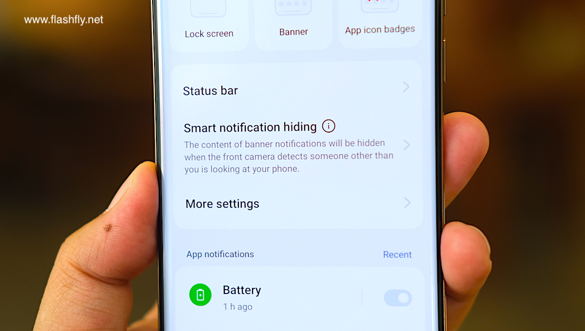 ซ่อนการแจ้งเตือนอย่างชาญฉลาด – เมื่อผู้ใช้ได้รับข้อมูลการแจ้งเตือน จะมีเพียงเจ้าของเท่านั้นที่สามารถดูการแจ้งเตือนบนหน้าจอ จึงสามารถป้องกันการแอบดูข้อมูลและปกป้องความเป็นส่วนตัวของผู้ใช้งาน รวมถึงยัง เบาเสียงเรียกเข้าเมื่อมองหน้าจอสมาร์ตโฟน – เมื่อมีสายเรียกเข้า สมาร์ตโฟนจะเบาเสียงริงโทนโดยอัตโนมัติ เมื่อผู้ใช้งานจ้องไปที่หน้า ทำให้เสียงริงโทนไม่ดังรบกวนคนรอบข้างขณะที่กำลังดูว่าใครโทรเข้ามา