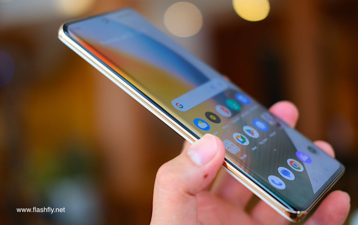 realme 11 Pro+ 5G ใช้จอแสดงผลระดับเรือธงตั้งแต่ดีไซน์ขอบจอโค้ง 61 องศา ทำให้ขอบจอด้านข้างดูไร้ขอบ ขณะที่ขอบจอด้านล่างบางเพียง 2.33 มิลลิเมตร ซึ่งเกิดจากกระบวนการ COP Ultra และยังเสริมความแข็งแรงหน้าจอด้วยกระจกนิรภัย 0.65 มิลลิเมตร ผ่านการทดสอบการตกจากที่สูง 1 เมตร มั่นใจได้ในเรื่องคุณภาพ