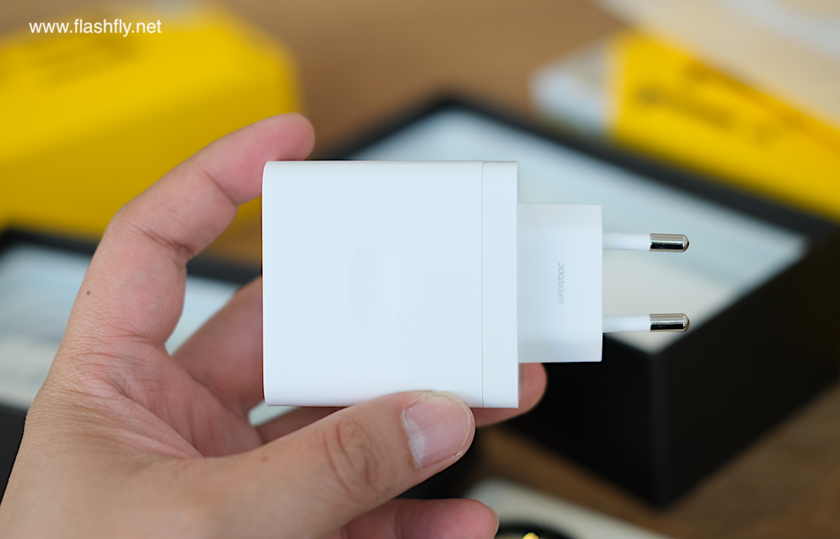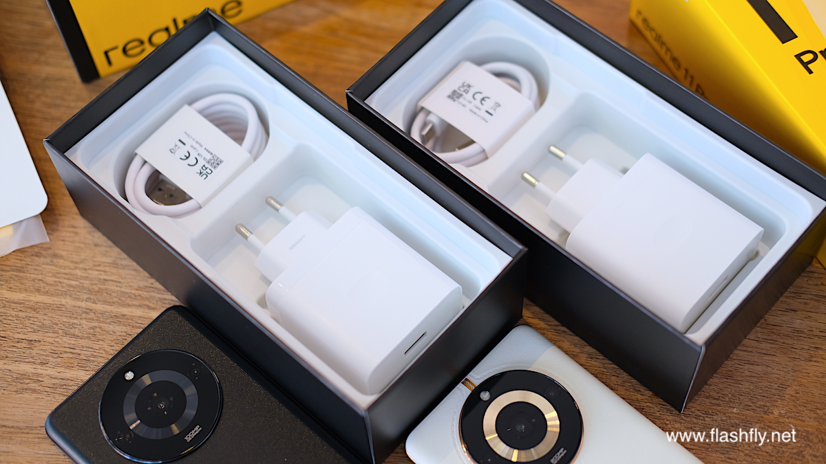 ชั้นล่างสุดของกล่องเป็นช่องเก็บสายชาร์จ USB Type-C และ หัวชาร์จแบตเตอรี่ USB Power Adapter โดย realme 11 Pro+ 5G มาพร้อม 100W SUPERVOOC ขณะที่ realme 11 Pro 5G ได้รับ 67W SUPERVOOC