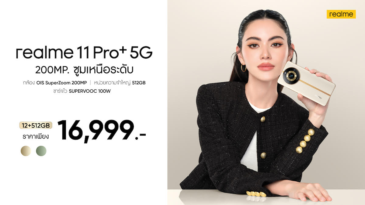 realme 11 Pro+ 5G นำเสนอรุ่นความจุ 8/512GB โทนสี Sunrise Beige และ Oasis Green ในราคา 16,999 บาท โดยสามารถพรีออเดอร์ได้ตั้งแต่วันที่ 30 มิถุนายน – 6 กรกฏาคมผ่านช่องทาง realme Brand Shop และตัวแทนจำหน่ายทั่วประเทศ โดยสามารถสั่งจองได้ในราคาเพียง 500 บาท พิเศษสำหรับช่วงพรีออเดอร์รับของแถมฟรี! มูลค่า 9,999 บาท และรับส่วนลดเพิ่มเติมตามแต่ละ ช่องทาง หรือสามารถเป็นเจ้าของได้พร้อมกันตั้งแต่วันที่ 7 กรกฏาคมเป็นต้นไป รับฟรี realme Gift Box มูลค่า 1,999 บาท นอกจากนี้ยังสามารถเป็นเจ้าของได้ผ่านช่องทาง Lazada โดยหากพรีออเดอร์ตั้งแต่วันที่ 30 มิถุนายน – 6 กรกฏาคมจะได้รับคูปองส่วนลดเพิ่มไปอีก 1,000 บาท (เหลือเพียง 15,999 บาทเท่านั้น) ช่องทางการสั่งซื้อ : https://bit.ly/3p8Pwny