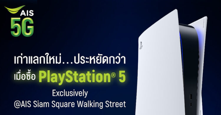 AIS จัดโปรโมชั่นเก่าแลกใหม่ มอบส่วนลดพิเศษสำหรับซื้อ PlayStation 5 เพียงคำคอนโซลเครื่องเก่ามาแลกซื้อที่ AIS Siam Square Walking Street ระหว่างวันที่ 1 – 31 กรกฎาคม 2566 เท่านั้น