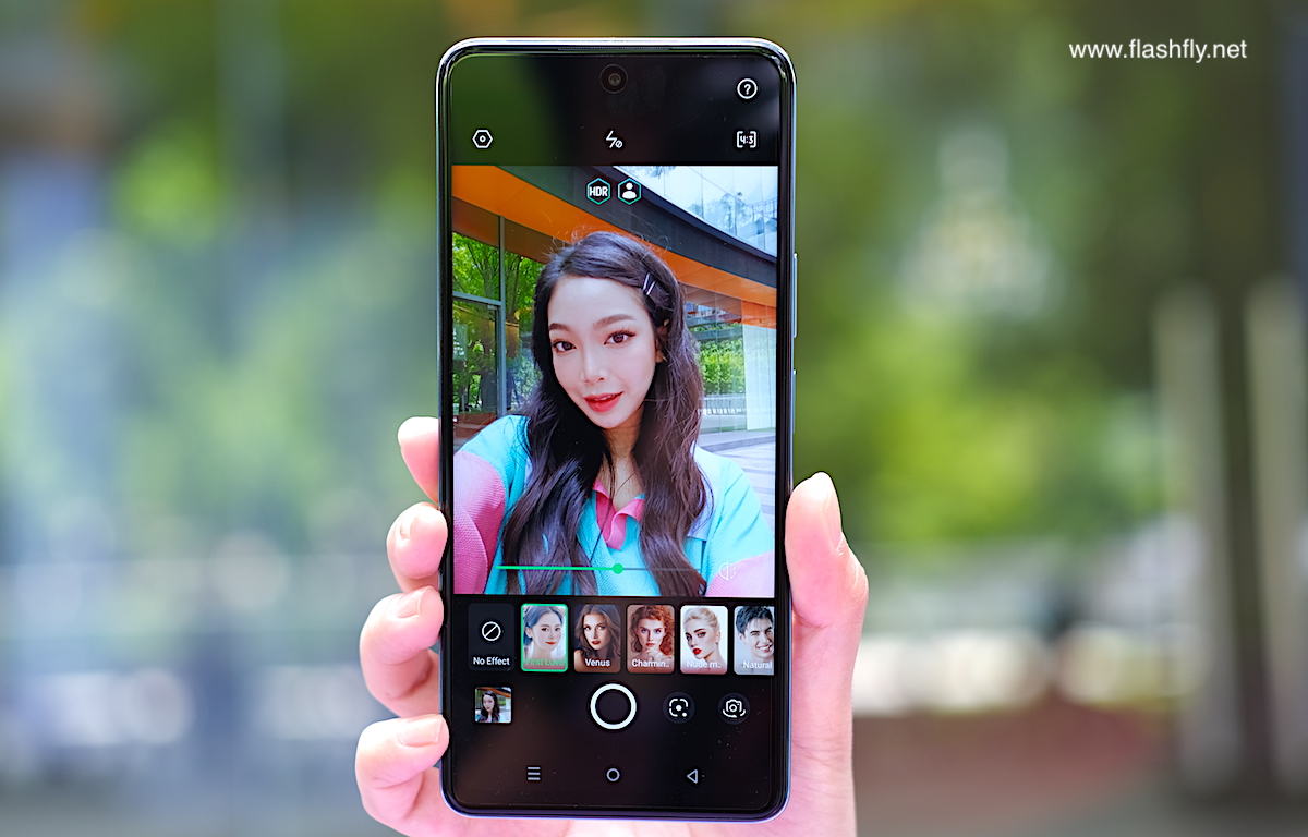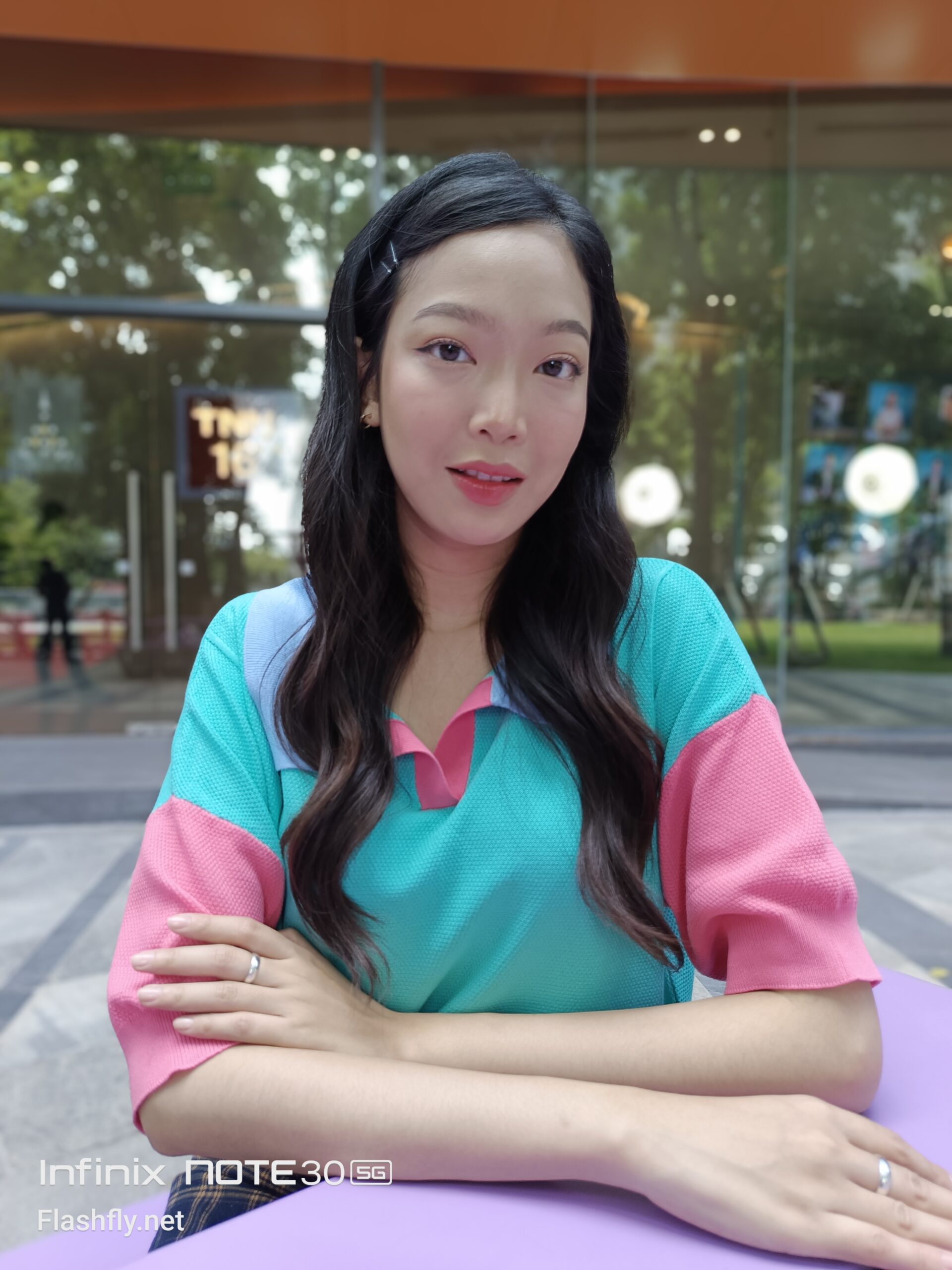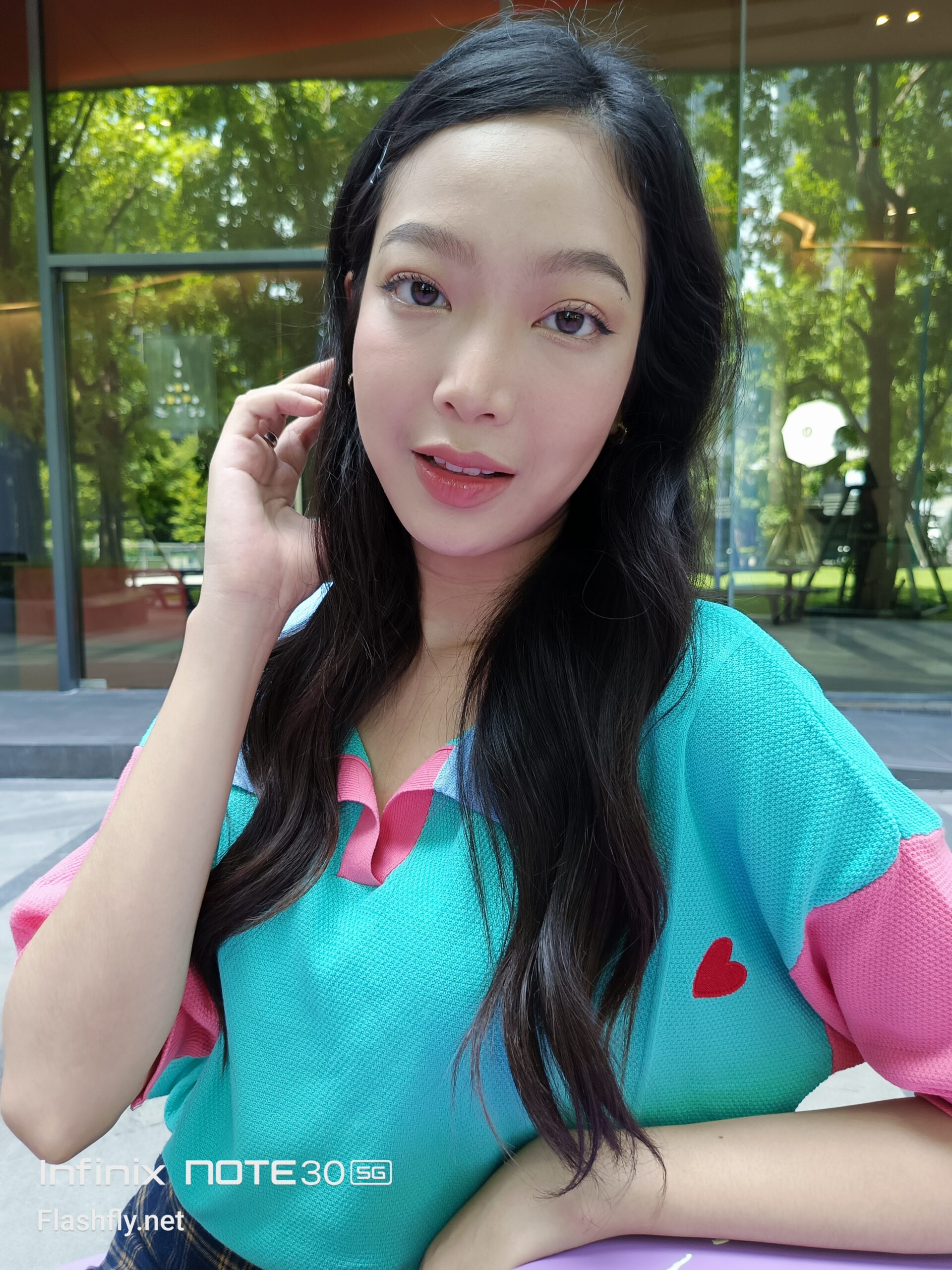 Infinix NOTE 30 5G ซ่อนกล้องหน้าไว้ในหลุมเล็กๆ บนหน้าจอ มีความละเอียด 16 ล้านพิกเซล รูรับแสง F2.0 และยังติดตั้งแฟลช LED ไว้ที่ขอบบนหน้าจอมาให้ด้วย ช่วยถ่ายเซลฟี่ยามค่ำคืนหรือในที่แสงน้อย