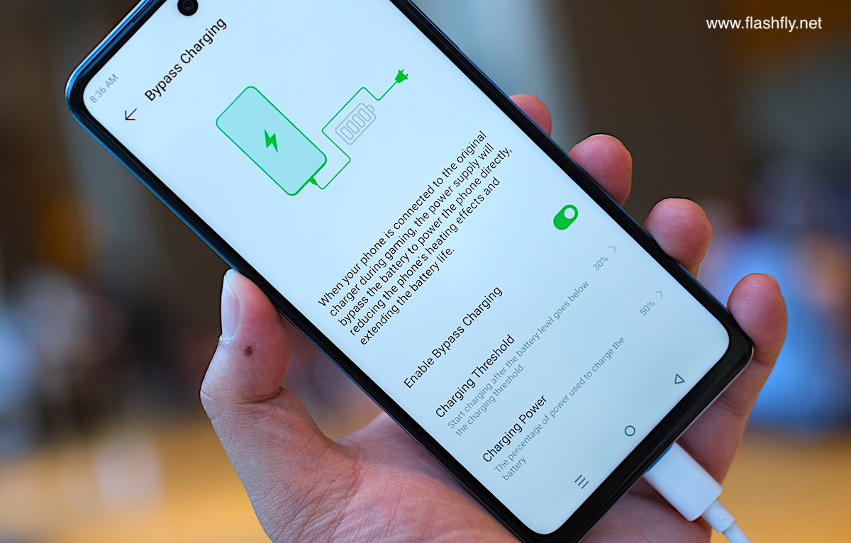 ที่น่าสนใจก็คือ Infinix NOTE 30 5G ยังรองรับการชาร์จแบตเตอรี่แบบ Bypass ที่ออกแบบมาสำหรับการชาร์จแบตเตอรี่ระหว่างเล่นเกม ปกติแล้วการชาร์จแบตเตอรี่ในสมาร์ตโฟนทั่วไป พลังงานจะถูกจ่ายจากหัวชาร์จไปยังแบตเตอรี่ในตัวเครื่อง แล้วส่งต่อพลังงานไปยังชิปเซ็ต แต่โหมดการชาร์จแบบ Bypass พลังงานจะข้ามแบตเตอรี่ในสมาร์ตโฟนแล้วจ่ายตรงไปยังชิปเซ็ต จึงทำให้สมาร์ตโฟนไม่เกิดความร้อนมากเกินไปเมื่อชาร์จแบตเตอรี่ขณะเล่นเกม จึงเล่นเกมได้ยาวนานต่อเนื่อง