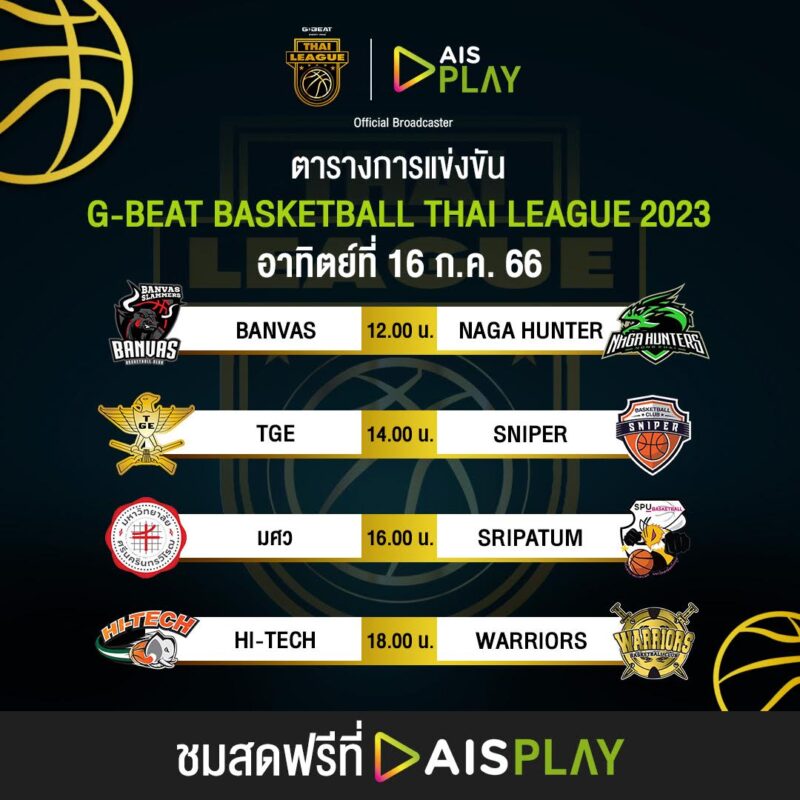 AIS PLAY ยังคงตอกย้ำความเป็นศูนย์กลางด้านคอนเทนต์กีฬาชั้นนำทั้งในประเทศและระดับโลก ล่าสุดได้ผสานความร่วมมือกับ สมาคมกีฬาบาสเกตบอลแห่งประเทศไทยเดินหน้าถ่ายทอดสดการแข่งขัน Basketball Thai League2023 หรือบาสเกตบอลไทยลีก บาสเกตบอลอาชีพสูงสุดของไทย ให้แฟนบาสเกตบอลชาวไทยได้รับชมฟรีทุกเครือข่าย แบบจัดเต็มทุกแมตช์ทั้งชมสดและรีรัน ผ่าน AIS PLAY ในทุกช่องทาง ประเดิมการแข่งขันนัดแรก 15 กรกฎาคม เวลา 12.00 น. เป็นต้นไป