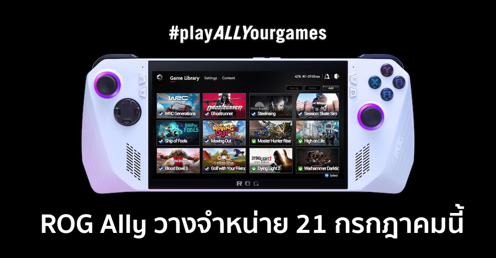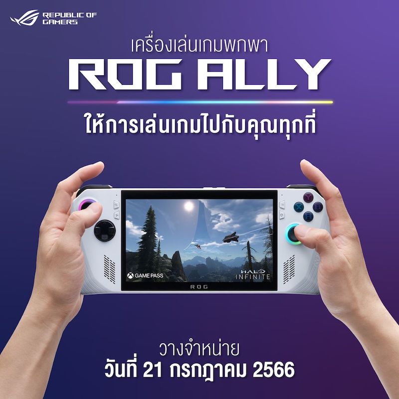 ASUS เปิดเผยกำหนดการวางจำหน่ายเครื่องเล่นเกมพกพา ROG Ally อย่างทางการในไทย วันที่ 21 กรกฎาคม 2566 แต่ยังไม่ได้ประกาศราคาออกมา