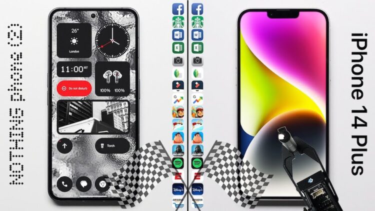 Nothing Phone 2 สมาร์ทโฟนที่มีดีไซน์โดดเด่น ถูกนำมาทดสอบความเร็วเพร้อมปรียบเทียบกับ iPhone 14 Plus ที่เปิดตัวมานานกว่า 10 เดือน โดยสมาร์ทโฟนรุ่นใหม่ของ Nothing มีราคาถูกกว่า 200 ดอลลาร์สหรัฐ หรือราว 6,890 บาท