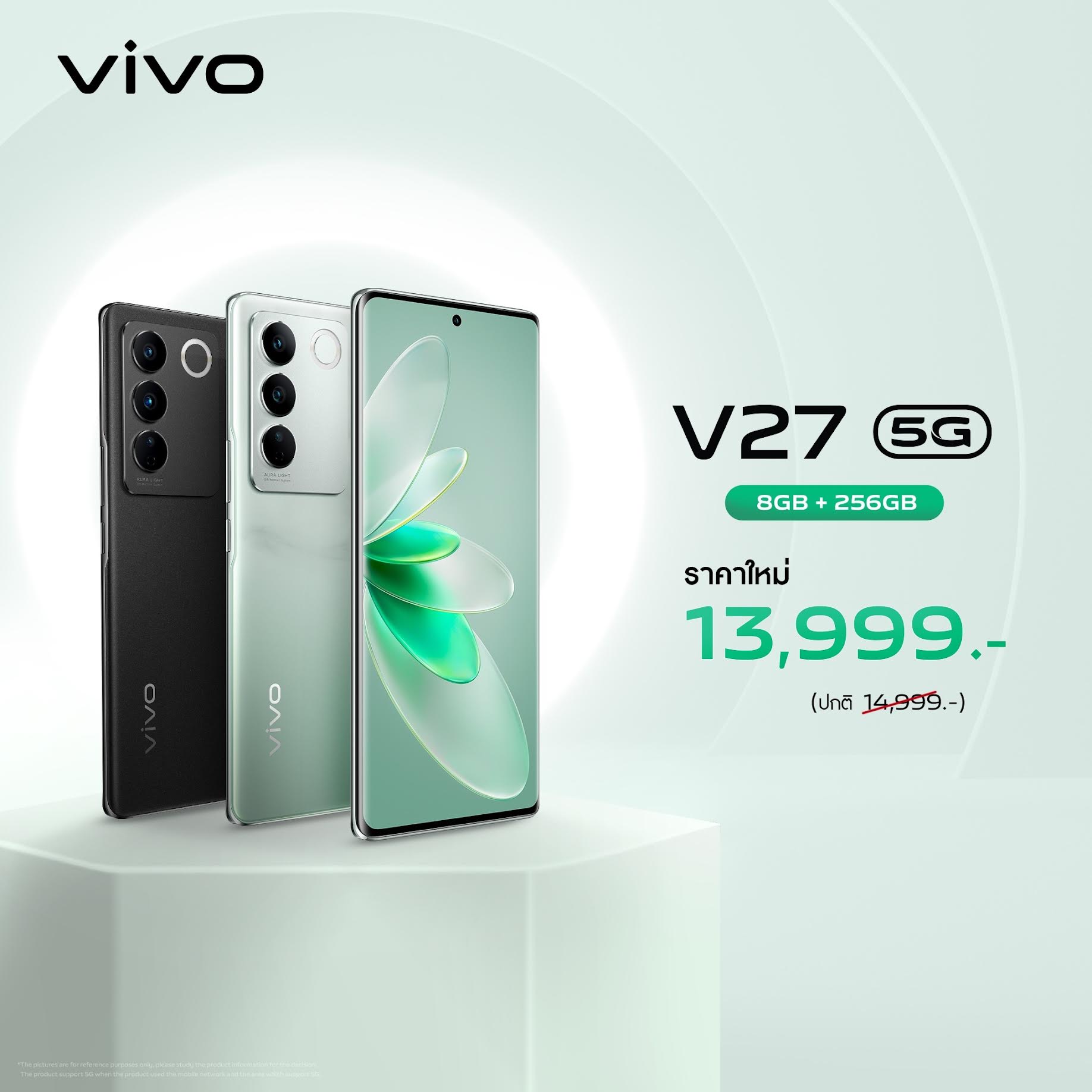 ผู้ที่สนใจสามารถเป็นเจ้าของ vivo V27 5G (8GB + 256GB) ในราคาใหม่ 13,999 บาท ได้แล้วตั้งแต่วันนี้ที่ vivo Brand Shop ทุกสาขาและตัวแทนจำหน่ายทั่วประเทศ ติดตามรายละเอียดเพิ่มเติมได้ที่เฟซบุ๊ก vivo Thailand และเว็บไซต์ https://www.vivo.com/th