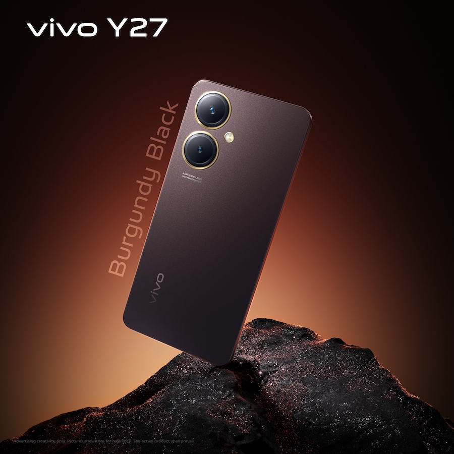 vivo Y27 4G มีให้เลือก 2 สี ได้แก่ สีดำ Burgundy Black และ สีฟ้า Sea Blue มาพร้อมจอแสดงผล LCD ความละเอียด 2388 x 1080 พิกเซล ขนาด 6.64 นิ้ว ติดตั้งกล้องหน้า 8 ล้านพิกเซล ไว้ในรอยบาก ส่วนกล้องหลัง 50 ล้านพิกเซล วางคู่กับกล้องรอง 2 ล้านพิกเซล