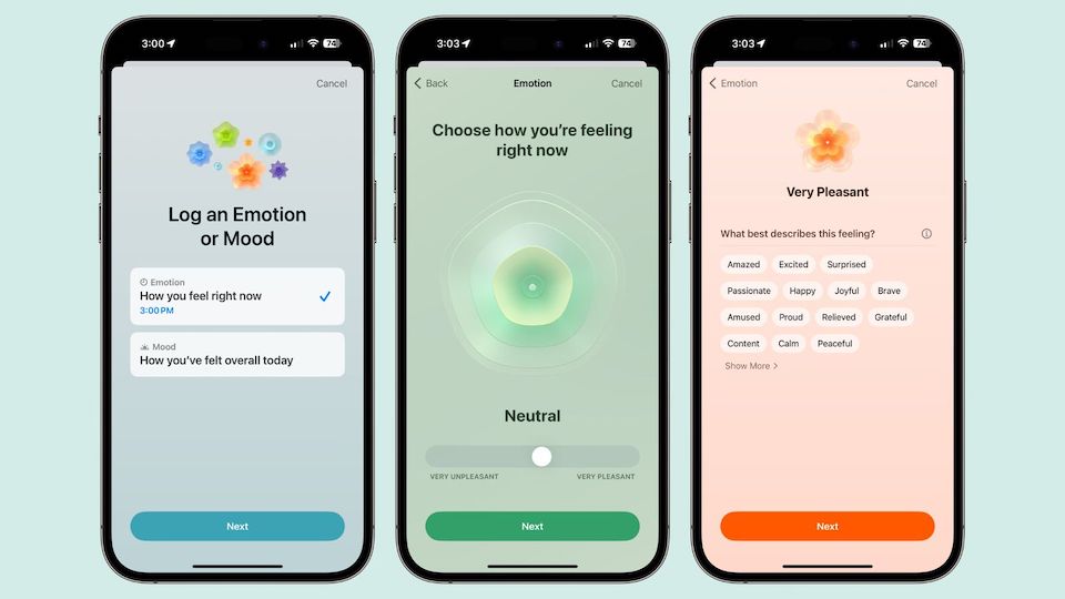 Mood Tracking ในแอป Health ได้รับการปรับปรุงกราฟิกทั้งสีสันและสัญลักษณ์บางส่วนที่บ่งบอกแต่ละอารมณ์