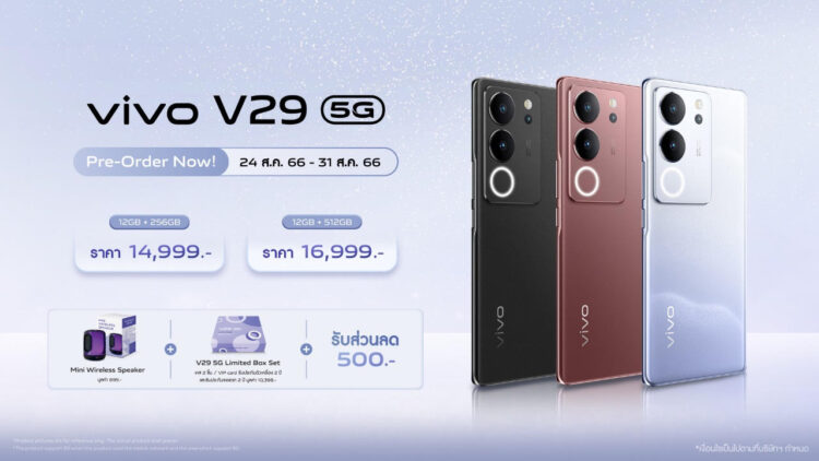 • vivo V29 5G (รุ่น 12GB + 256GB) ราคา 14,999 บาท