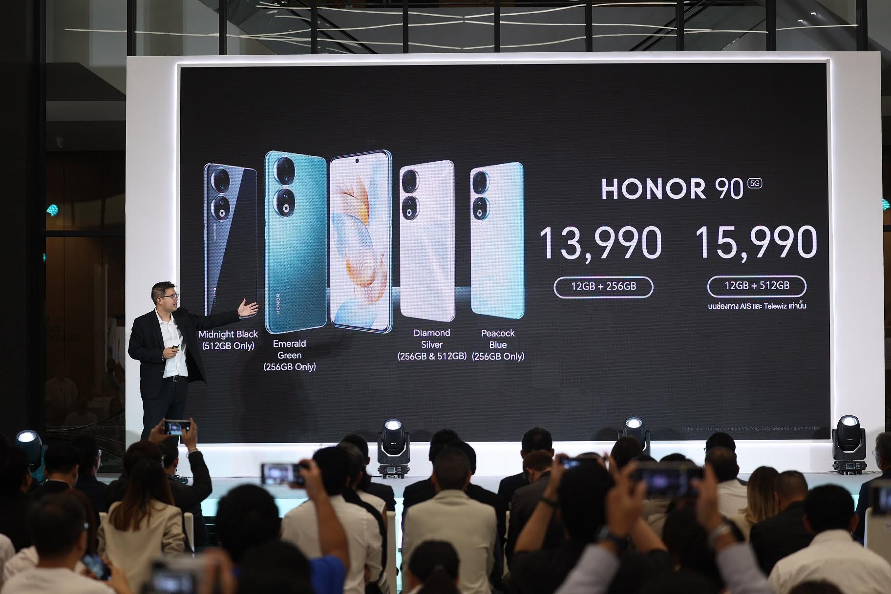 ทั้งนี้สำหรับการเปิดตัว HONOR ได้สร้างกระแสด้วยการดึงตัว ‘หยางหยาง’ ซุป’ตาร์ชาวจีนขวัญใจแฟนๆ ทั่วโลกเป็น Global Brand Ambassador เพื่อเป็นตัวกลางสื่อสารภาพลักษณ์ HONOR 90 Series เจาะตลาด New Gen ซึ่งเป็นกลุ่มเป้าหมายหลักของสมาร์ทโฟนรุ่นนี้ ชูจุดเด่นดีไซน์สวยพรีเมียม ออกแบบฟีเจอร์ตามแนวคิด ‘Human-centric’ ที่ยึดผู้ใช้งานเป็นศูนย์กลาง นำเสนอเทคโนโลยีและนวัตกรรมล่าสุด ออกแบบฟีเจอร์เอาใจผู้ใช้งานสาย ครีเอเตอร์แบบจัดเต็ม ไม่ว่าจะเป็นกล้องหลัก 200 ล้านพิกเซล กล้องหน้า 50 ล้านพิกเซล เสริมด้วยเทคโนโลยี HONOR Image Engine ปลดล็อกศักยภาพการถ่ายให้ ‘ช็อตไหนก็ปัง’ ในทุกสถานการณ์ พร้อมฟีเจอร์ AI Portrait เนรมิตภาพ Portrait สวยสมจริงเป็นธรรมชาติ มาพร้อมหน้าจอแสดงผลการันตีประสิทธิภาพจาก DxOMARK ในระดับ Gold Display ด้วยคะแนน 140 คะแนน อีกทั้งยังมีเทคโนโลยี PWM Dimming 3840Hz ซึ่งคำนึงถึงสุขภาพสายตาของผู้ใช้งาน สามารถลดอัตราการกะพริบและลดแสงของหน้าจอที่มีประสิทธิภาพสูงสุดในตลาด สมาร์ทโฟนระดับเดียวกันในชั่วโมงนี้ โดยกลยุทธ์ดังกล่าวได้ตอกย้ำแผนการบุกตลาดเชิงรุกที่สร้างกระแสการเปิดตัวให้แรงดีไม่มีตก พร้อมขับเคลื่อนแบรนด์ HONOR สู่แถวหน้าของตลาดสมาร์ทโฟนในอนาคต