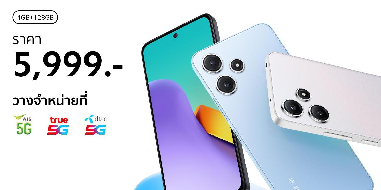 Redmi 12 5G รุ่นความจุ 4GB+128GB วางจำหน่ายในประเทศไทยอย่างเป็นทางการแล้ววันนี้ โดยมีให้เลือก 3 สี ได้แก่ Midnight Black, Sky Blue และ Polar Silver ในราคาเพียง 5,999 บาท ที่ร้านค้าของผู้ให้บริการเครือข่าย AIS, TRUE และ dtac