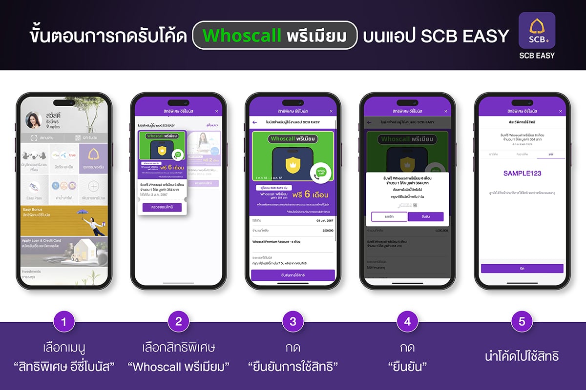 ธนาคารไทยพาณิชย์ ผนึกกำลังกับแอปพลิเคชัน “Whoscall” ที่จะช่วยระบุหมายเลขโทรศัพท์ที่ไม่รู้จักและบล็อกสแปม พัฒนาโดย Gogolook ผู้ให้บริการเทคโนโลยีเพื่อความเชื่อมั่น (Trust-Tech) ในการสร้างเครือข่ายและระบบการต่อต้านการฉ้อโกงของโลก ครั้งแรกกับการแจกโค้ด Whoscall พรีเมียมฟรี 1 ล้านโค้ด นาน 6 เดือน มูลค่ารวมกว่า 354 ล้านบาท สำหรับลูกค้า SCB EASY เพียงกดรับโค้ด Whoscall พรีเมียม ผ่านเมนู EASY BONUS บนแอปพลิเคชัน SCB EASY ได้ง่ายๆ ตั้งแต่วันที่ 4 กันยายน 2566 – 3 มกราคม 2567 (จำกัด 1 คน/สิทธิ/ตลอดระยะเวลาแคมเปญ) โดยความร่วมมือครั้งนี้ ธนาคารหวังเป็นอย่างยิ่งว่าจะสามารถช่วยยกระดับความปลอดภัยเพื่อป้องกันความเสี่ยงจากภัยของมิจฉาชีพได้อย่างเท่าทันและมีประสิทธิภาพ พร้อมเสริมสร้างความมั่นใจในการทำธุรกรรมให้แก่ลูกค้าของธนาคารมากยิ่งขึ้น