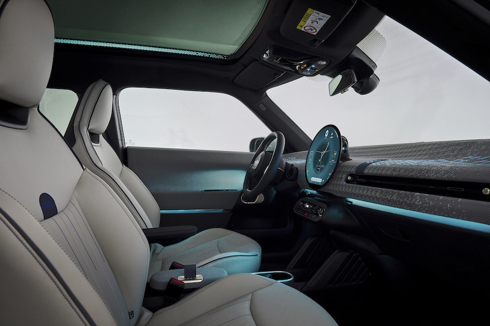 ดีไซน์ภายนอกถูกปรับให้มีความทันสมัยขึ้นด้วยไฟหน้า LED และไฟท้าย Matrix LED แต่ภาพรวมยังคงความเป็น DNA ของ MINI ไว้อย่างชัดเจน ภายในถูกปรับให้เรียบง่ายขึ้น และใช้วัสดุที่เป็นมิตรต่อสิ่งแวดล้อมมากขึ้น เช่น สิ่งทอและเส้นด้ายทั้งหมดในเบาะนั่งทำจากวัสดุรีไซเคิล มาพร้อมจอแสดงผล OLED ทรงกลม ขนาดเส้นผ่านศูนย์กลาง 240 มิลลิเมตร เป็นทั้งแผงหน้าปัด และระบบอินโฟเทนเมนต์ ซึ่งทำงานบนระบบปฏิบัติการ MINI 9